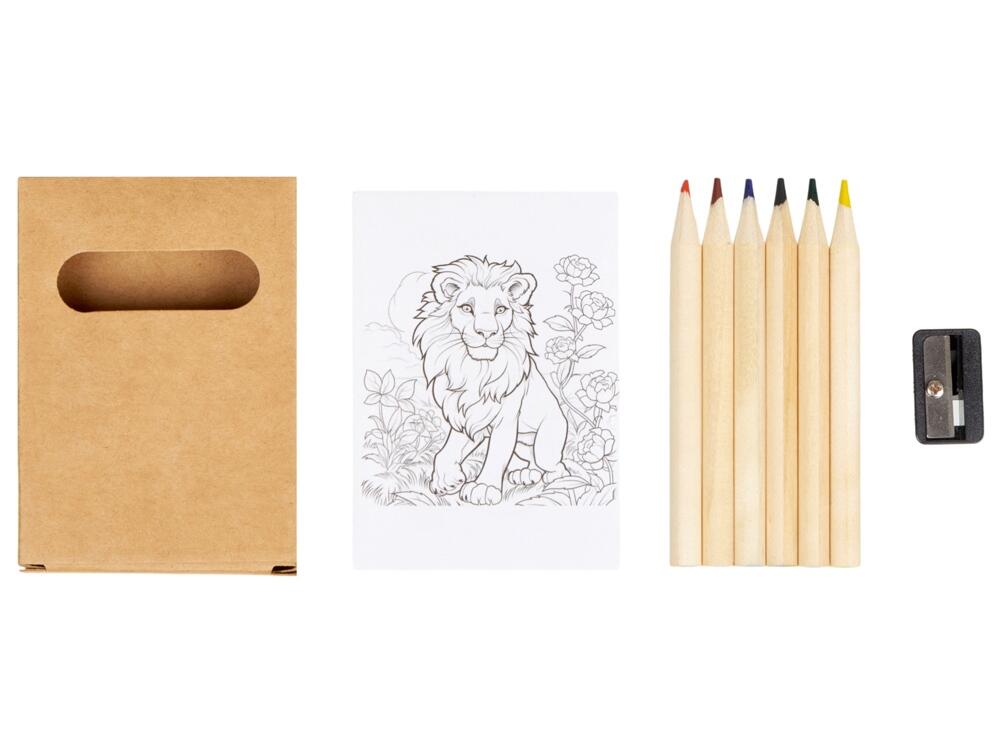 Небольшой набор для рисования станет отличным промо-сувениром. В наборе 6 цветных карандашей, точилка и раскраска с изображениями животных. Набор поставляется в картонной коробке.