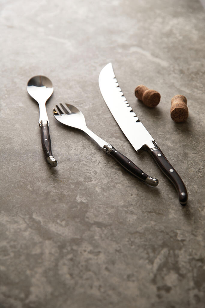 Набор Gigaro, состоящий из салатных ложки-вилки и ложки, поможет создать на кухне атмосферу французского бистро. Изящные ложка и ложка-вилка изготовлены из нержавеющей стали и паккавуда. Паккавуд — это материал, состоящий из древесины ценных пород и смолы. Так называемая ламинированная древесина получается очень прочной и долговечной, не скользит в руке, не впитывает запахи и не поддается влаге. Такой набор станет хорошим презентом любителям гастрономии, поскольку поставляется он в подарочной упаковке.