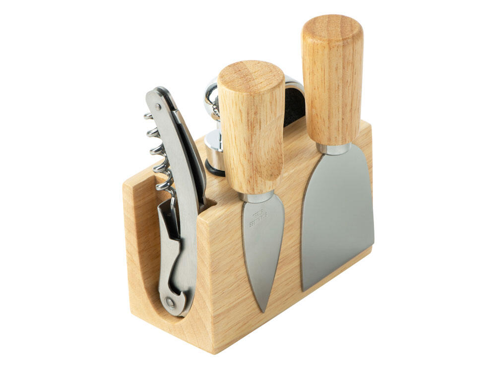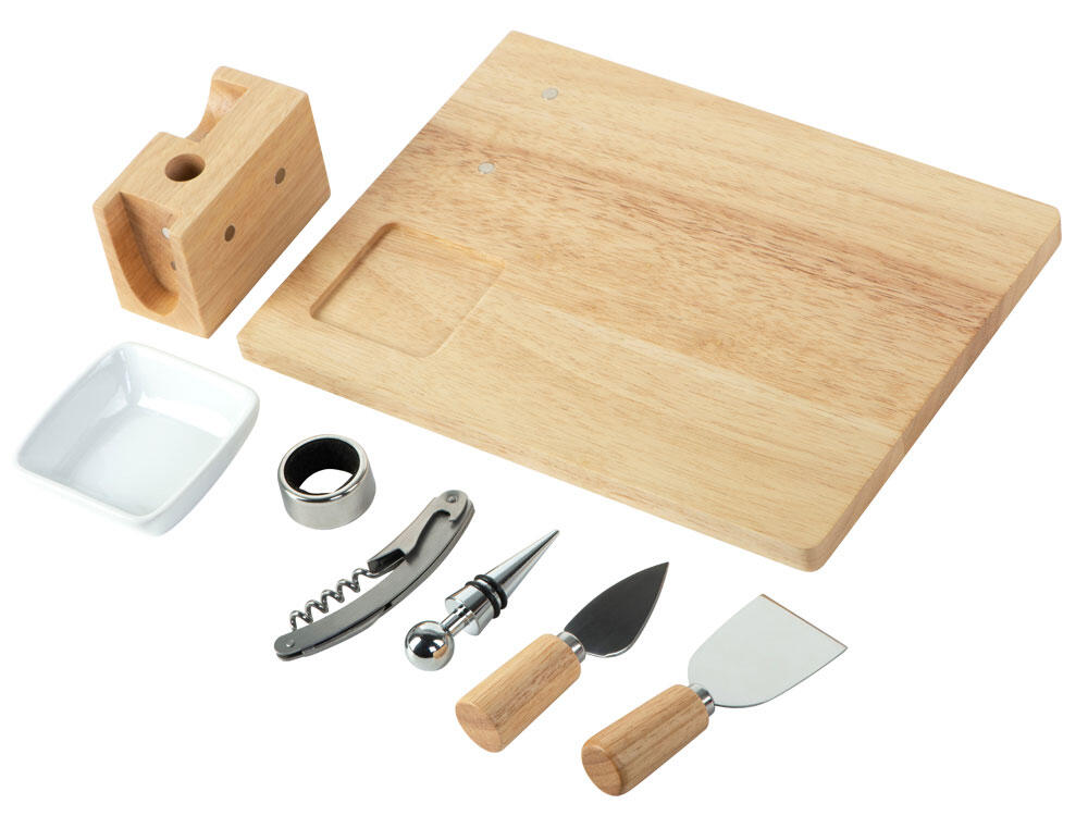 Набор для сыра и вина от Eat&Bite, включающий в себя сразу 7 приспособлений: разделочная доска для сыра, которая также может выступать в роли доски для подачи закусок, фарфоровая емкость для оливок, которую вы также можете использовать в качестве соусницы, штопор, пробка для вина, кольцо-каплеуловитель и два сырных ножа — листовидный, для пармезана, и лопатка для мягких сыров. Блок с принадлежностями для сыра и вина легко можно снять при необходимости, ведь он крепится к доске при помощи магнитов. Ножи фиксируются к широкой грани этого блока при помощи магнитов, штопор — на узкой, ему отведена отдельная вырубленная ниша, что обеспечивает быстрый и удобный доступ к этим инструментам и предотвращает ржавение благодаря конструкции держателей. Для кольца и пробки предусмотрены вырубленные по форме каждого из приспособлений пазы, причем кольцо тоже имеет фиксирующий магнит. Пробка выполнена из блестящей нержавеющей пищевой стали, а за герметичность и плотность прилегания отвечают два кольца из плотной силиконовой резины, позволяющие использовать это приспособление с бутылками с разным диаметром горлышка. Штопор оснащен ножом для срезания фольги. Фарфоровая емкость предназначена для соуса, подачи закусок или оливок, имеет свое посадочное углубление на доске. В разобранном виде доску легко мыть, она просто разбирается и собирается. Использованный для доски и ручек ножей материал, каучуковое дерево, легко очищается, устойчив к гниению, тверд — благодаря всем этим свойствам эта доска продолжит долго и будет радовать не только во время сервировки закусок, но и в повседневном использовании. - 7 приспособлений в 1 наборе - высококачественная каучуковая древесина - нержавеющая пищевая сталь - 2 ножа для сыра: для пармезана и для мягких сортов - интересная конструкция на магнитах - предусмотрены и винные приспособления, и сырные — легче угадать с подарком на случай, если вы не уверены, что именно любит адресат - удобные эргономичные ручки ножей из натурального материала