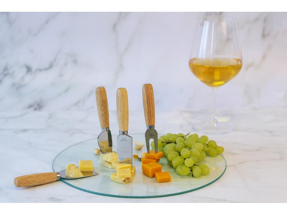 Набор для сыра от Eat&Bite состоит из стеклянной доски и ножей и предназначен для нарезки и подачи сыра разных сортов.