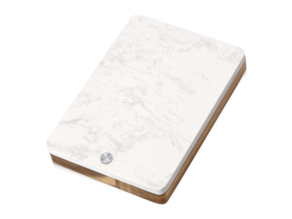 Набор для сыра бренда Eat&Bite Select состоит из ножа и вилки в футляре. Высококачественные материалы — акация и искусственный мрамор — обеспечивают набору долгую жизнь и благородный внешний вид. Крышка футляра, выполненная из белого мрамора, благодаря своей твердости может использоваться как разделочная доска, а благородный внешний вид делает ее идеальным вариантом для сервировки сыров и закусок.