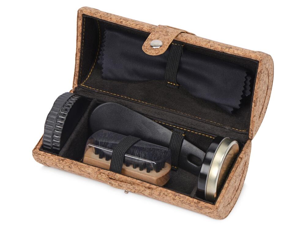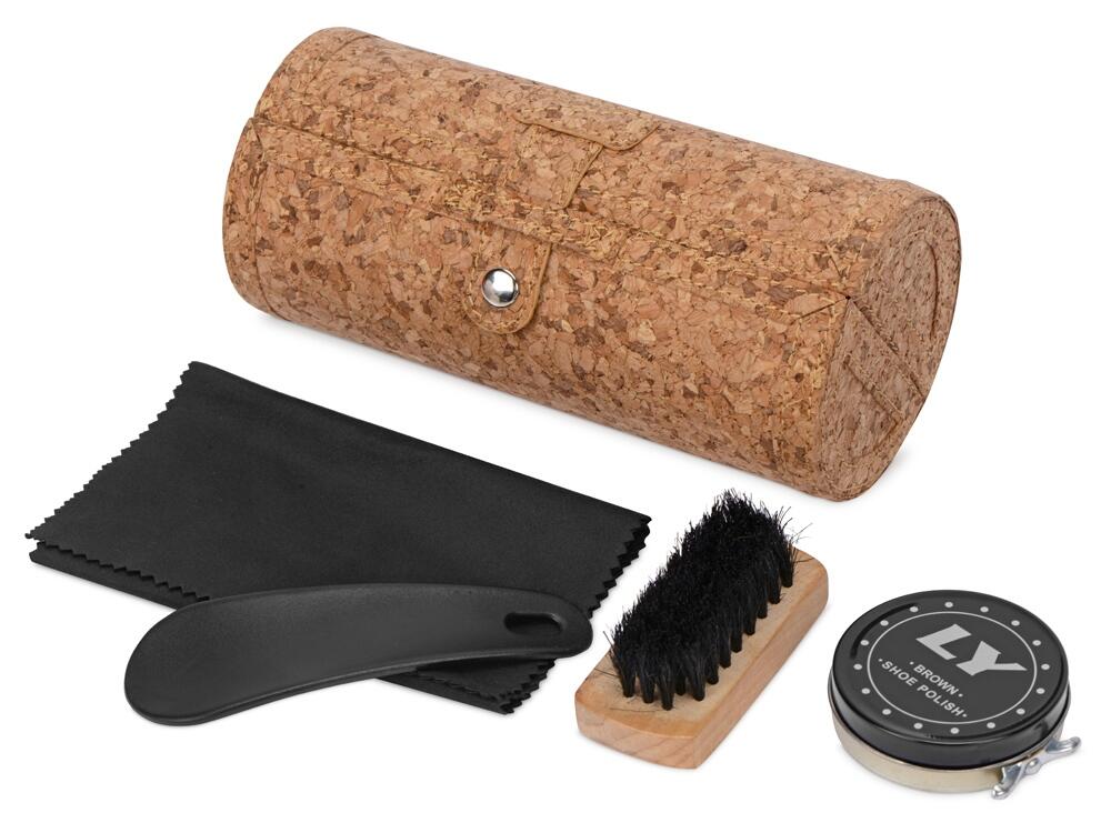 Набор для ухода за обувью из 5 предметов пригодится в деловых поездках. Компактный чехол с пробковым покрытием надежно застегивается и займет совсем не много места.