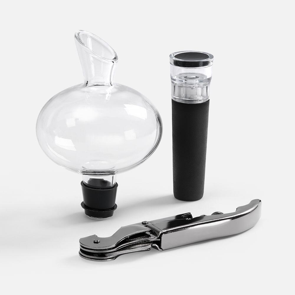 Нож сомелье легко извлекает пробку из бутылки, аэратор насыщает вино воздухом и улучшает его вкус, а винная пробка с насосным механизмом обеспечивает герметичность, продлевая свежесть напитка и сохраняя его лучшие вкусовые качества.