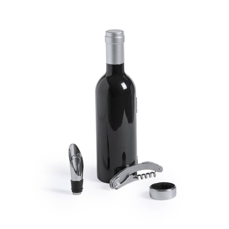 В комплекте 3 самых необходимых предмета – нож сомелье со штопором, воронка и каплеуловитель.