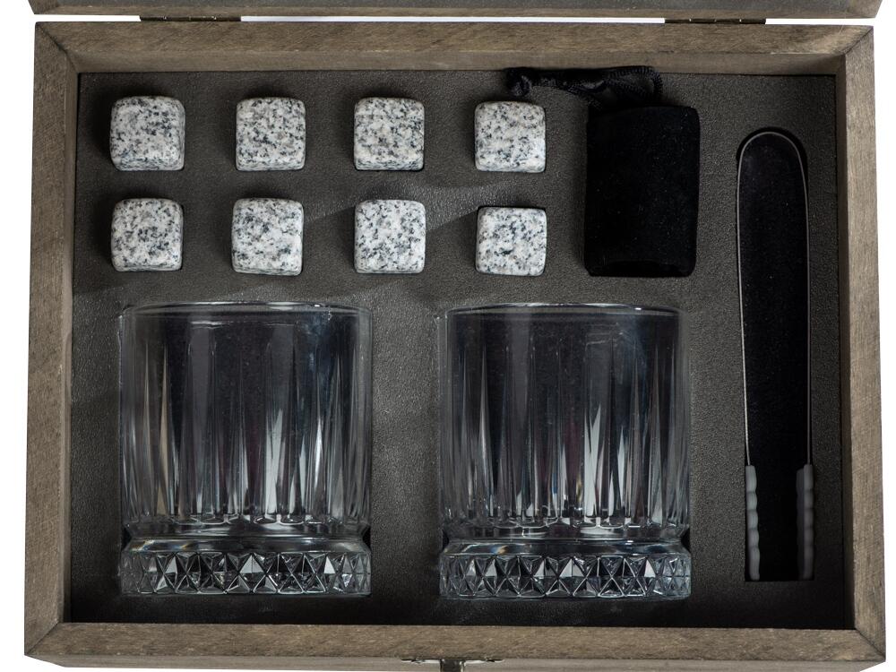 При желании после использования камни можно хранить в бархатном мешочке, который также можно забрендировать. Щипцы из стали помогут аккуратно разложить камни по бокалам, при этом не разбив их и не расплескав напиток.