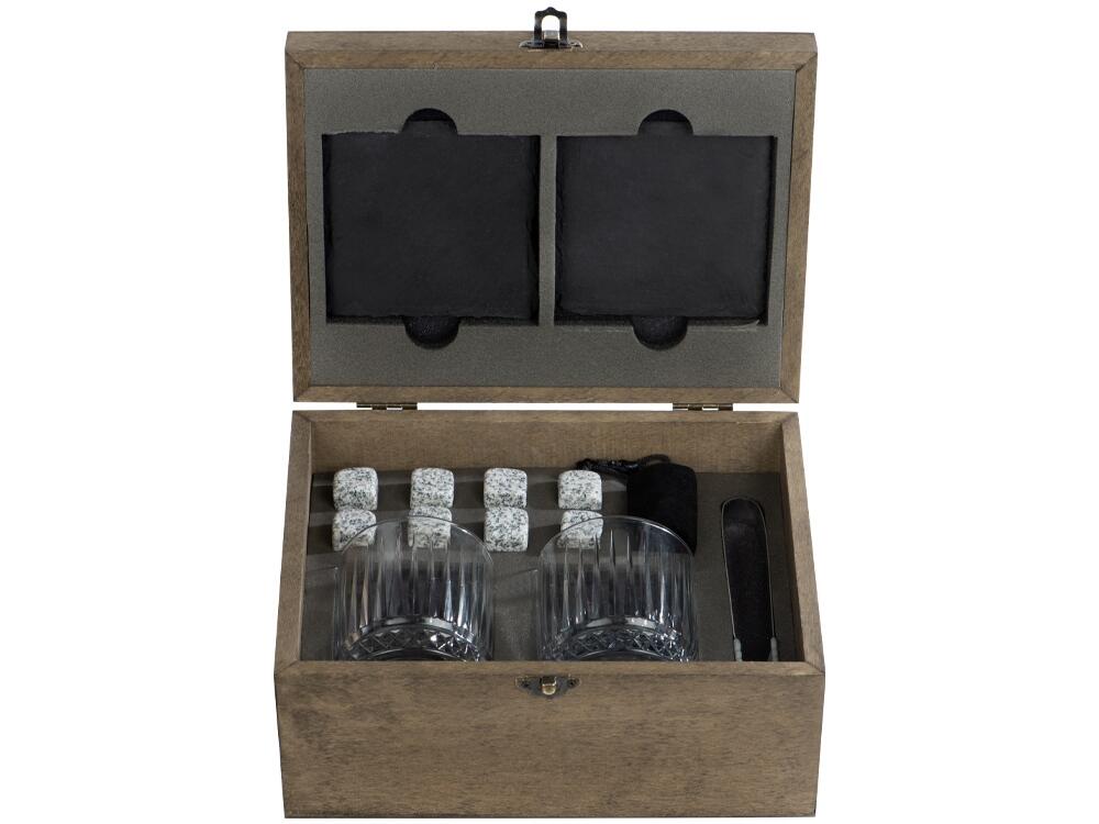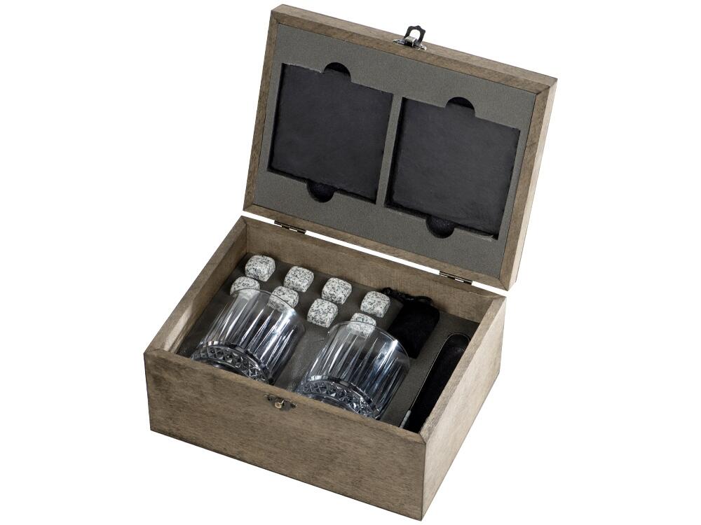 Набор для виски "Jack" состоит из двух стаканов с толстым дном, охлаждающих камней в мешочке, удобных щипцов и двух лаконичных костеров из сланцевого камня. Сет упакован в деревянную подарочную шкатулку, которая создает праздничное настроение еще до того, как вы откроете крышку. Более того, это уже готовый набор для подарка.