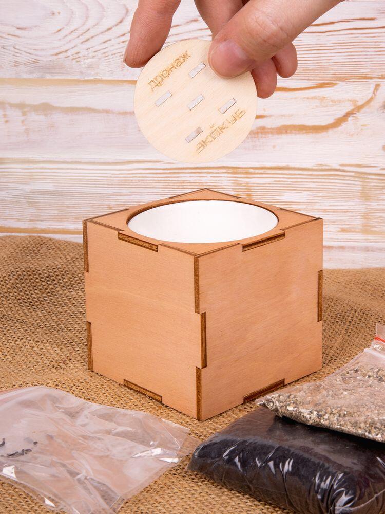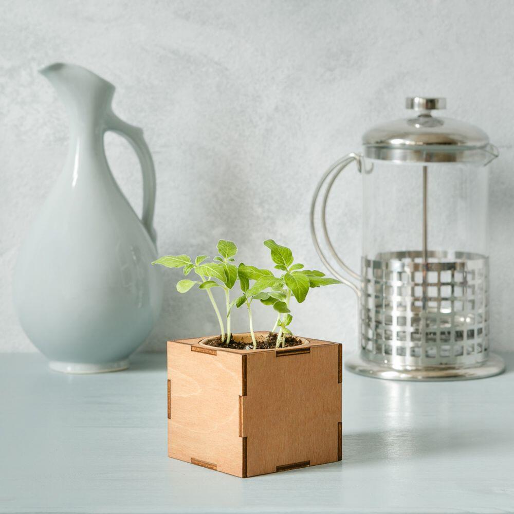 Безопасные материалы — березовая древесина и краска на водной основе — делают куб по-настоящему экологичным и позволяют ухаживать за растениями и взрослым, и детям. В наборе: деревянный куб, бумажный стаканчик, питательный грунт, семена, вермикулит.