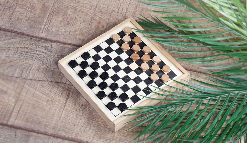 Игровое поле для шахмат и шашек нанесено прямо на выдвижную крышку футляра, обратная сторона остается чистой.