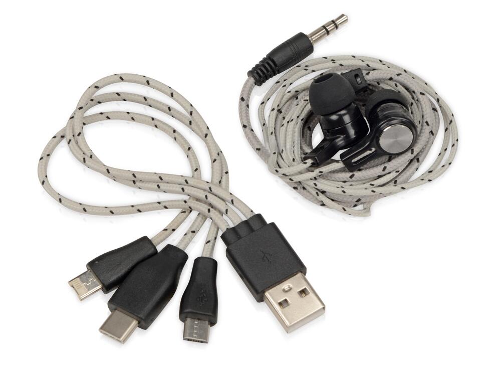 Набор «In motion» с наушниками и зарядным кабелем 3 в 1