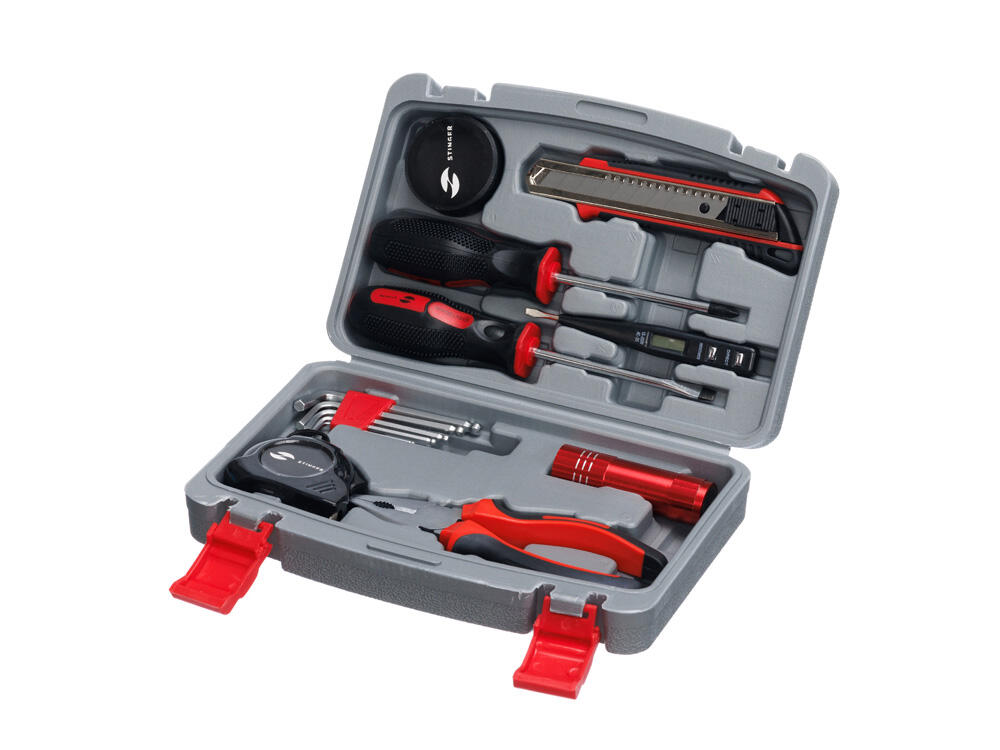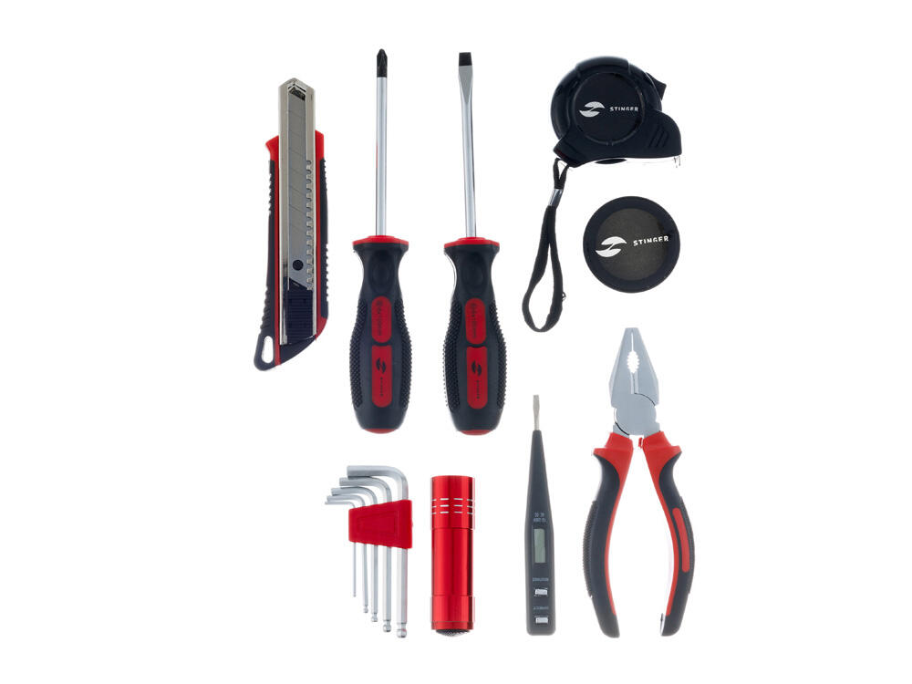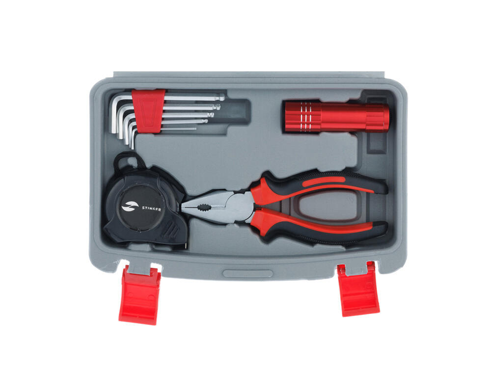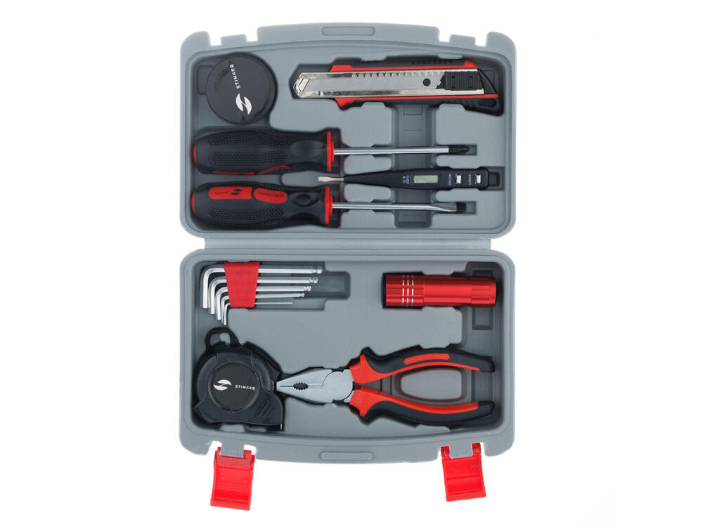 С набором инструментов STINGER NST128014 на 13 предметов можно быстро и эффективно решить любую хозяйственную задачу. Этот набор идеально подойдёт для осуществления мелкого ремонта по дому, починки бытовой техники, сборки мебели и выполнения множества других задач. Все инструменты упакованы в пластиковый кейс серого цвета с надёжными фиксаторами. Рабочие части каждого изделия выполнены из высококачественной закаленной углеродистой стали с хромированным покрытием, а рукоять - из мягкого нетоксичного пластика.