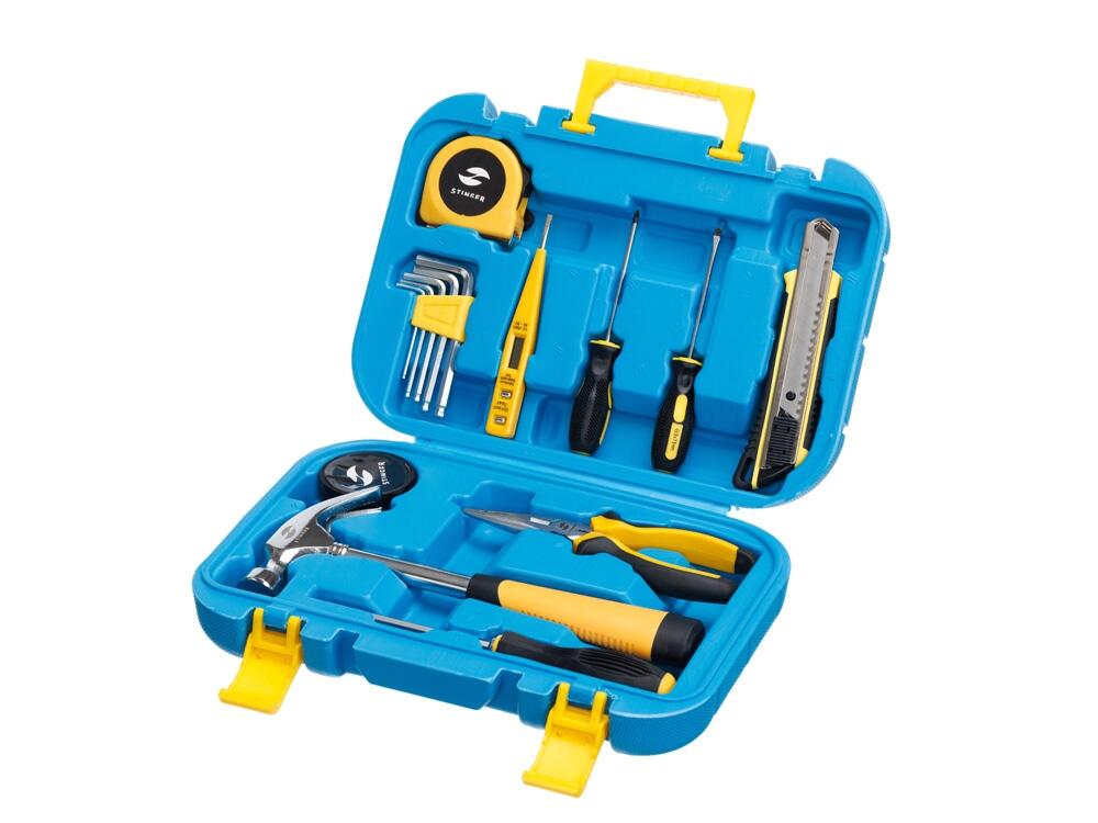 Набор инструментов STINGER NST028016 на 15 предметов – идеальный подарок для мужчины. В компактном пластиковом кейсе поместилось всё, что может потребоваться в быту. Все компоненты выполнены из высококачественной закаленной углеродистой стали с хромированным покрытием. Эргономичная пластиковая ручка обеспечивает устойчивое положение в руке. Кейс размером 290 х 75 x 205 мм не занимает много места. Его можно разместить на полке, в шкафу, в машине или гараже.