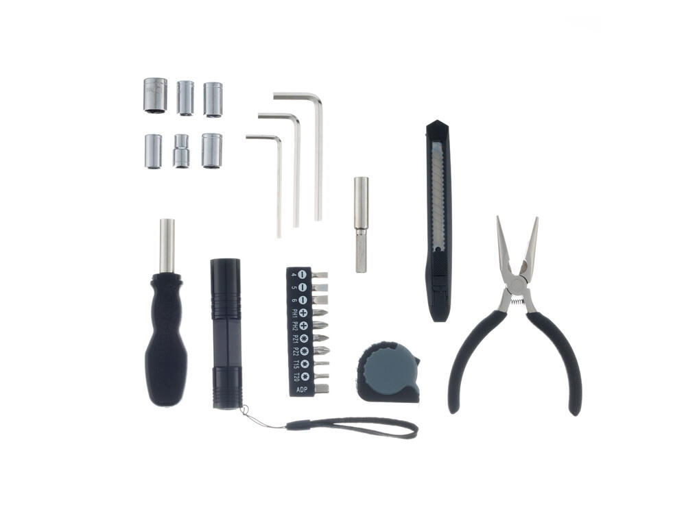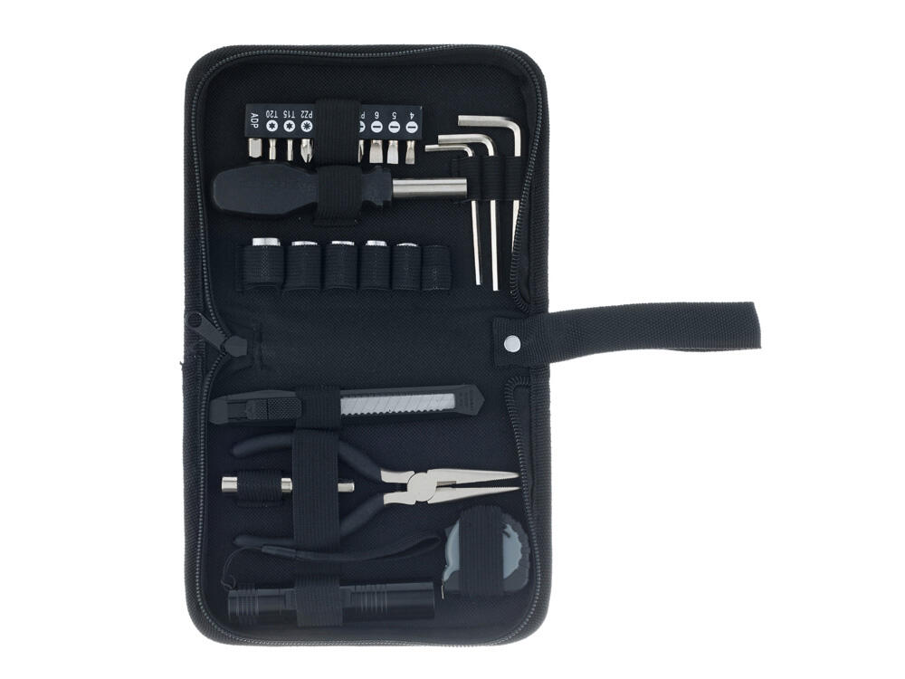Набор инструментов STINGER W0109 на 25 предметов придётся по вкусу всем тем, кто привык всё делать своими руками. С таким комплектом можно без труда произвести практически любой мелкий бытовой ремонт. Все предметы надёжно закреплены в прочном нейлоновом чехле. Этот компактный набор можно хранить в тумбочке, на полке, в шкафу или бардачке машины. Стальные рабочие части инструментов отличаются повышенной прочностью, рукоятки выполнены из износостойкого карбона. Для удобства чехол дополнен матерчатой ручкой для переноски.