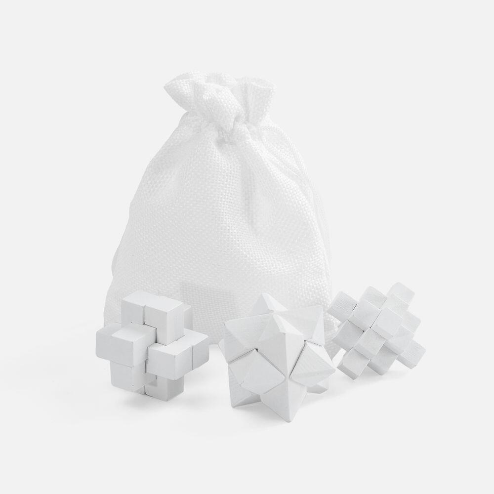 Деревянные фигуры не так просты, как кажется. Эта игра развивает пространственное мышление, тренирует терпение и наблюдательность.В наборе 3 деревянных головоломки, мешочек и коробка. Инструкция по сборке в комплекте.