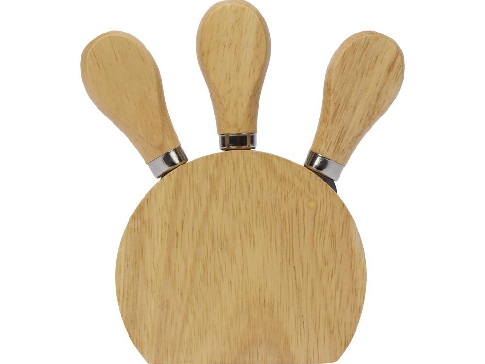 Набор состоит из ножей для сыра, подставки и удобной крафт-коробки. Кухонные инструменты выполнены из надежного каучукового дерева. Оно устойчиво к воздействию влаги, перепадам температуры и большим нагрузкам. Приборы устанавливаются в удобную деревянную подставку, где их можно хранить после использования. В комплект входят: