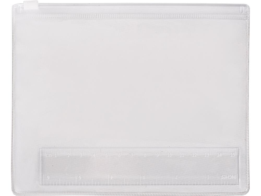 В канцелярский набор входит прозрачный пенал из ПВХ с zip-замком и линейка. Создайте идеальный подарок дополнив его блокнотом формата А6 и ручкой.