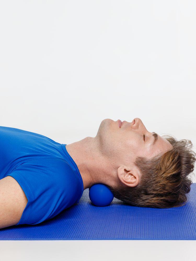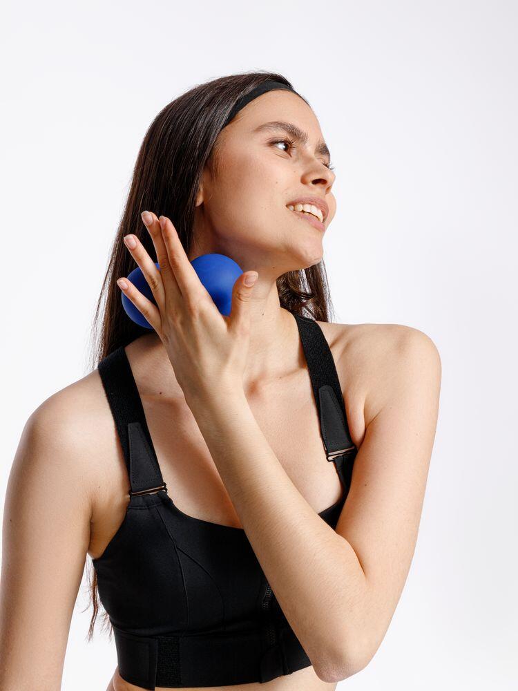 Разместите мяч на точке, в которой чувствуется дискомфорт, надавите и прокатывайте его из стороны в сторону в течение нескольких минут до ощущения расслабления.
