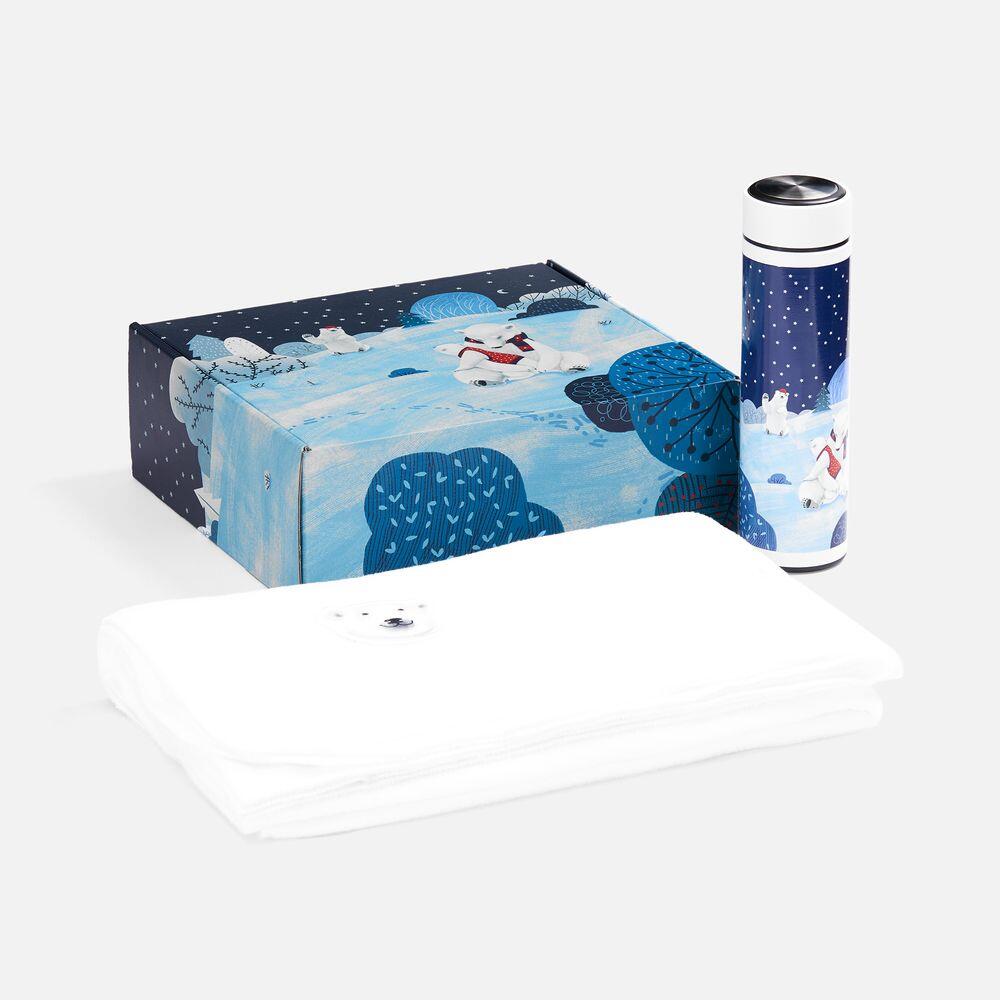 «Мишкин очаг» — это теплое объятие зимнего уюта в красочной подарочной упаковке. Здесь практичность встречается с волшебством: белый флисовый плед, словно припудренный первым снегом, в компании с лаконичным термосом поможет поддержать внутреннее тепло. Все составляющие набора украшены милыми изображениями с белыми мишками — одним из главных зимних символов. Это дарит настоящее ощущение праздника — будто маленький очаг тепла, который всегда можно взять с собой. Каждый предмет в наборе — часть единой истории о тепле и заботе, готовый сценарий счастливого вечера. Здесь нет сложных концепций — только тепло, мягкость и праздничное настроение, в которое хочется укутаться, как в плед. «Мишкин очаг» — это готовое решение для лаконичного и функционального новогоднего подарка с особым настроением и волшебным исполнением.