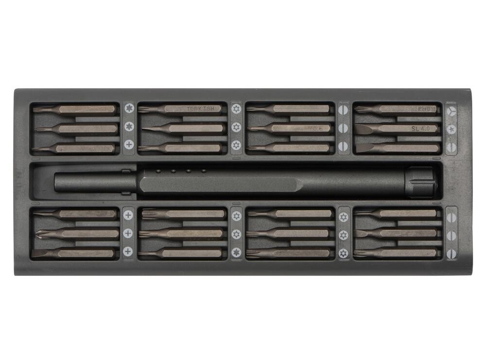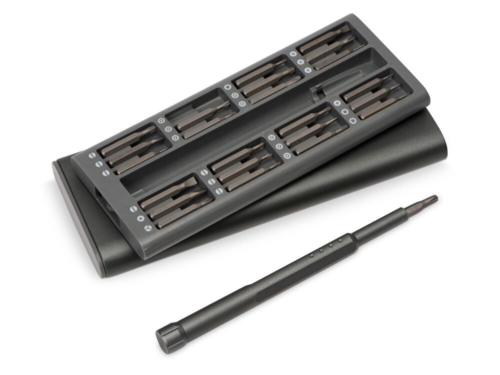 Набор из 24 насадок в металлическом кейсе. Насадки изготовлены из долговечной стали S2, твердость HRC 58-6. Включает наиболее распространенные и востребованные комплектующие для ремонта мобильных телефонов, планшетов, ноутбуков, игровых приставок и других электронных устройств.