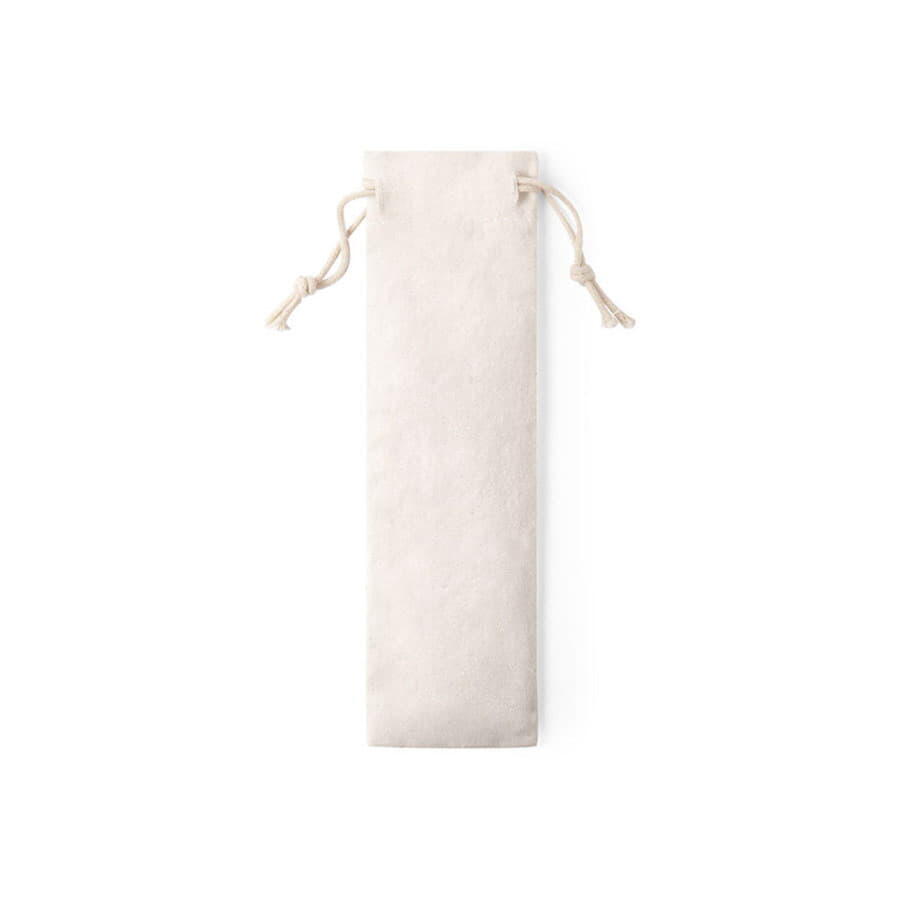 Набор из трех предметов: ложка, вилка и нож в чехле из 100% хлопка с затягивающейся тесьмой, подходит для многоразового использования.