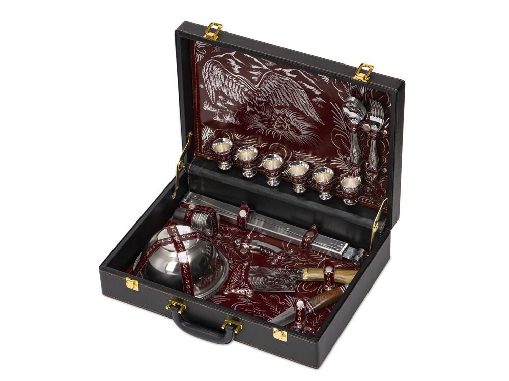 Кейс из сплит-кожи, с повышенной износостойкостью, внутренняя отделка натуральная кожа с художественным выжиганием.