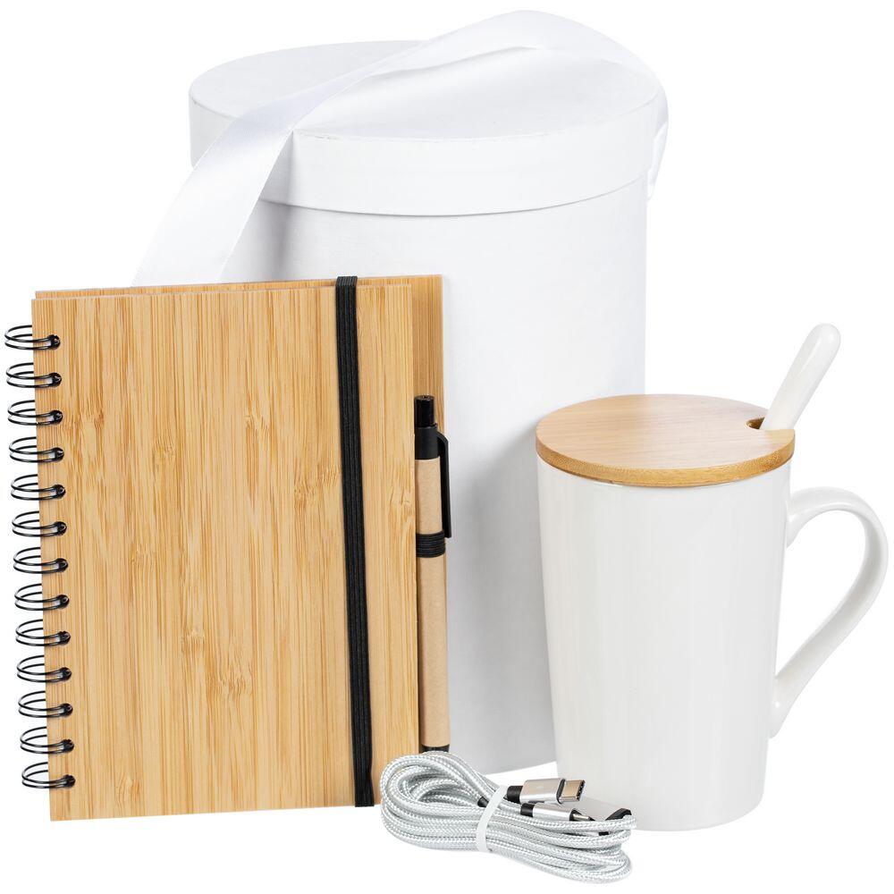 Стильный и лаконичный набор для комфортного пребывания в офисе: продуманная кружка для расслабленного кофе-брейка, оригинальный супертвердый бамбуковый блокнот на кольцах для самых важных записей (и эффектной гравировки!), а также прочный кабель с тремя разъемами — чтобы всегда оставаться на связи.