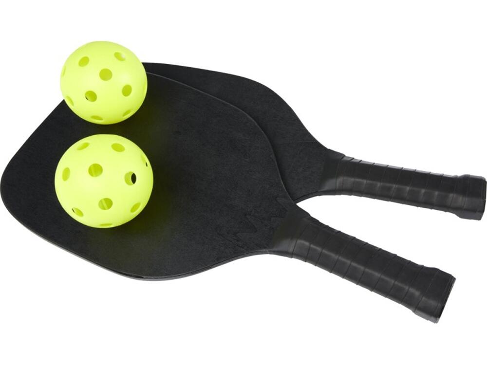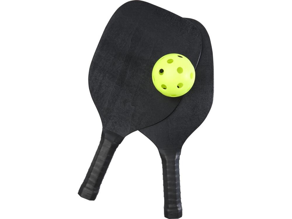 С этим комплектом ракеток из буковой древесины вы получите массу удовольствия во время игры на пляже, в парке или саду. Ракетки размером 40 x 20 x 0,7 см окрашены в черный цвет и имеют много места для печати логотипа. Ручки обернуты лентой из ПУ, обеспечивающей максимальное сцепление во время интенсивной игры. В комплекте есть 2 мячика из РР-материала, он упакован в сетчатый чехол для хранения из полиэстера размером 45 x 26 см.