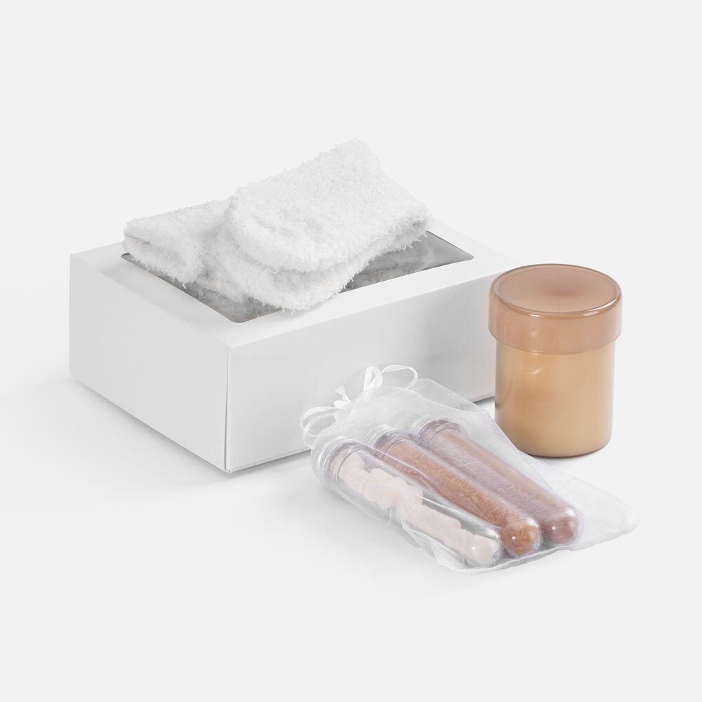 Пушистые носки и свеча с ароматом сосны и кипариса — уютный дуэт, который создает атмосферу безмятежности. Свеча наполняет пространство теплым светом и лесными нотами; после использования стильный подсвечник легко превращается в мини-контейнер или шкатулку.