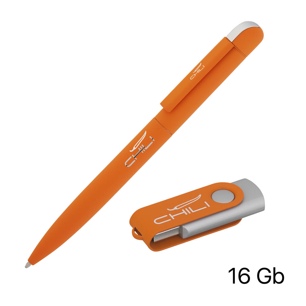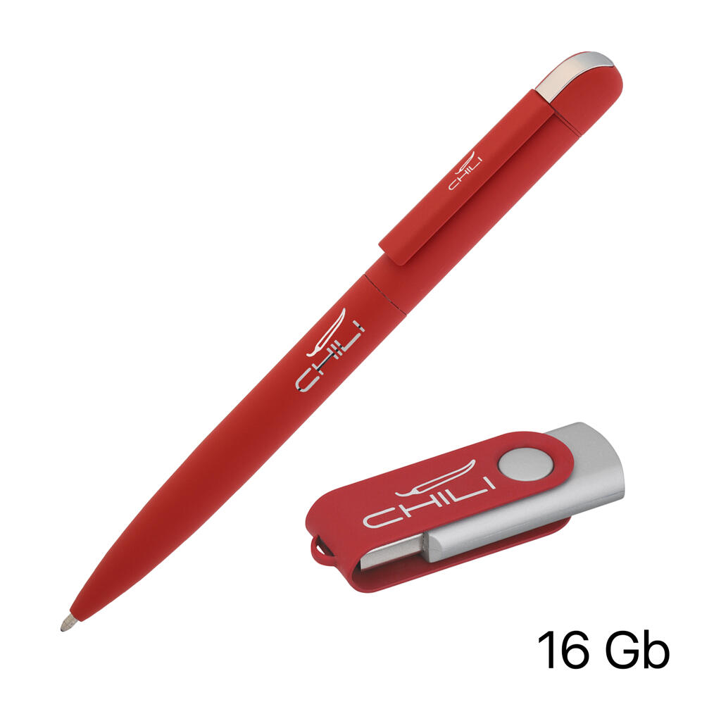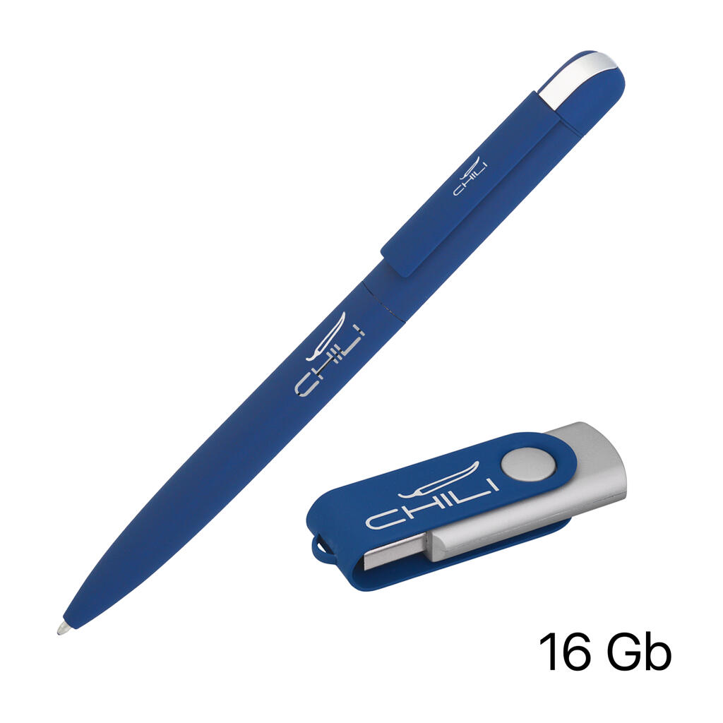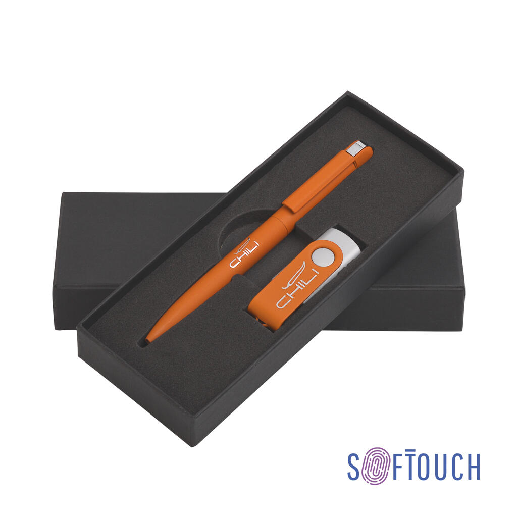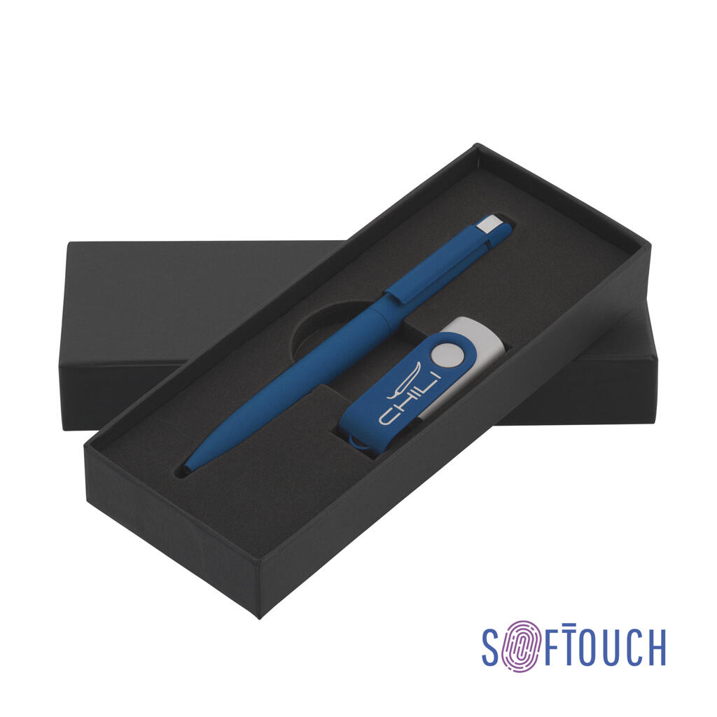 Набор ручка + флеш-карта 16 Гб в футляре, покрытие soft touch