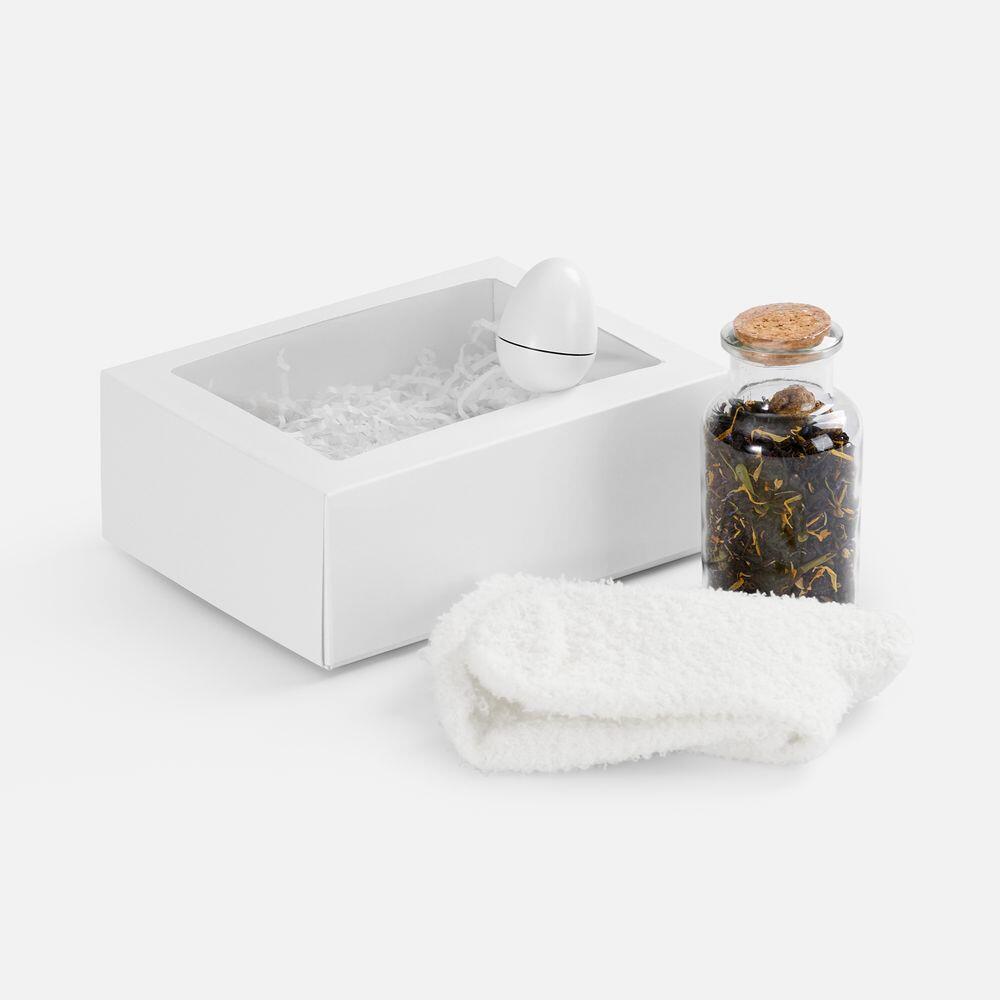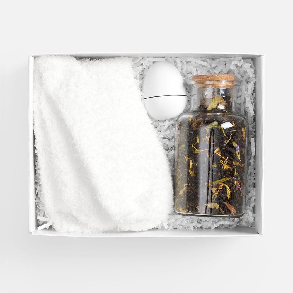 Забота о себе в трех аккордах. Каждому подчас нужны приятные мгновения уединения для обретения душевного равновесия. Набор Snuggery воплощает идею осознанного отдыха и персонального комфорта. Это базовые элементы заботы — мягкие носки и бальзам для губ — и уникальный сорт чая, задающий особое настроение. Идеальное решение для всех, кто ценит спокойные моменты уединения и эстетику повседневных ритуалов.