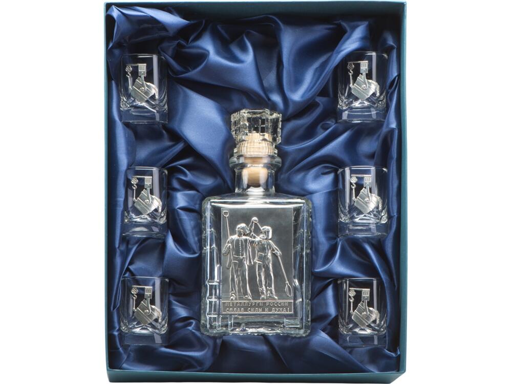 Набор для водки со штофом «Металлургический» - это отличный VIP-подарок для представителей металлургической отрасли. Подарок упакован в стильную подарочную упаковку, а сохранность набора гарантирует шелковый ложемент, который приятно оттеняет литье.