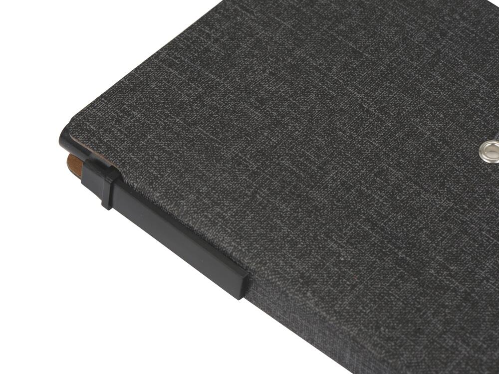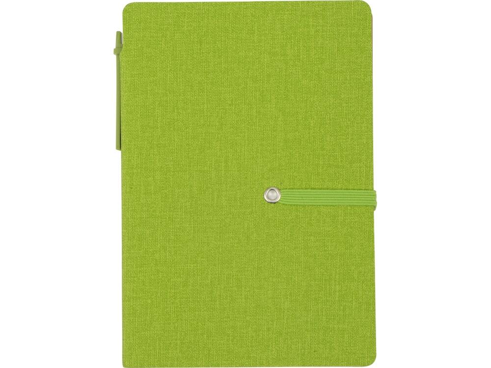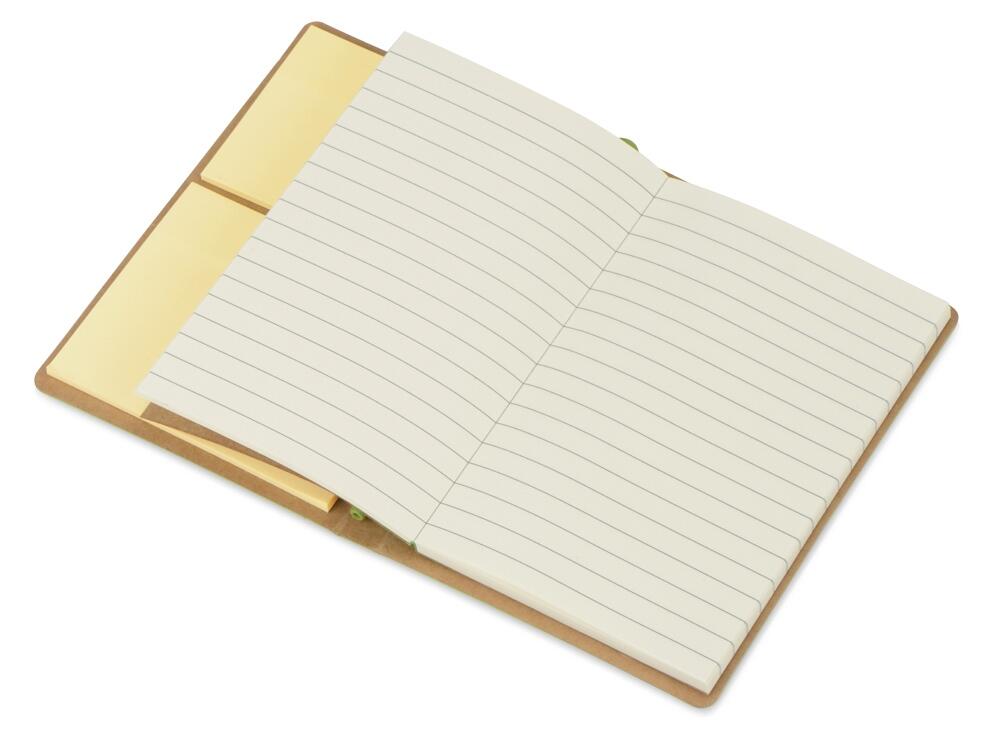 Компактный набор включает в себя разноцветные стикеры разных размеров, блокнот с линованной бумагой и ручку c корпусом из переработанного картона. Обложка выполнена из фактурной искусственной кожи, которая, при тиснении, меняет цвет на более глубокий.