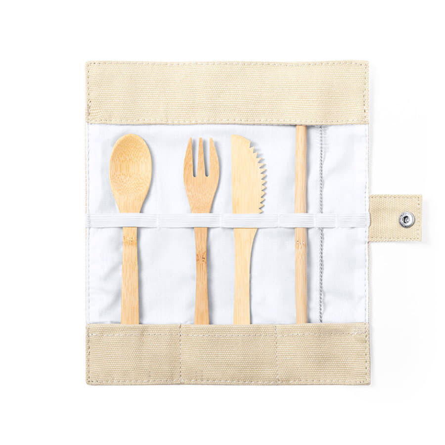 Набор из пяти предметов: ложка, вилка, нож, трубочка для питья с ершиком для чистки.