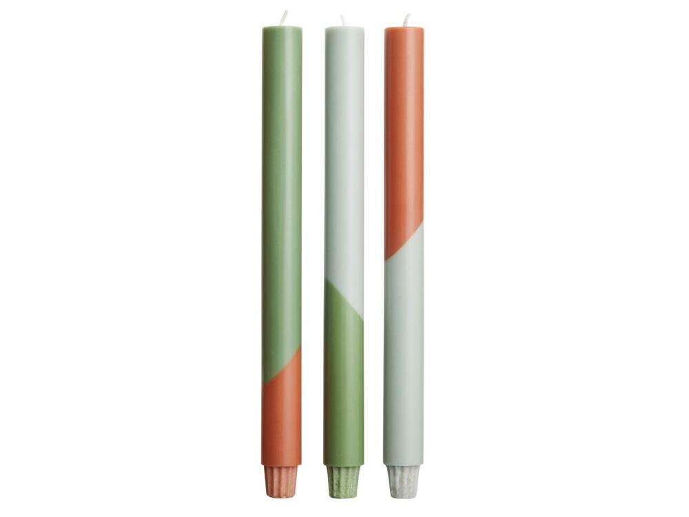 Свечи для ужина Eden отличаются яркой диагональной цветовой палитрой и изготовлены вручную из воска на растительной основе, не содержащего парафина. Они не имеют запаха, имеют фитиль из 100% хлопка и горят чисто. Каждая покупка способствует посадке дерева для фермеров в Африке и поддерживает специальный проект справедливой торговли на острове Ява, Индонезия. Комплект из трех штук. Время горения свечи: 18 – 20 часов. Воск из пальмовых ядер.
