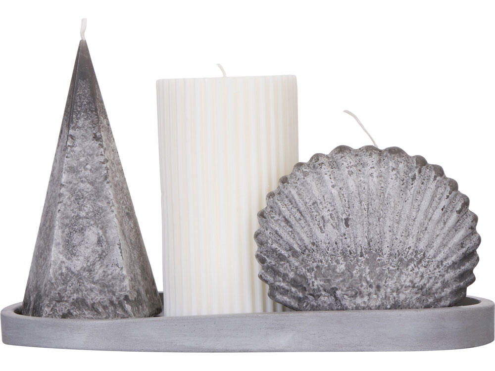Лаконичная геометрия, сочетающаяся с природным дизайном ракушки, натуральные молочный и неоднородный серый оттенки и подставка из гипсобетона смотрятся естественно, стильно и ненавязчиво.