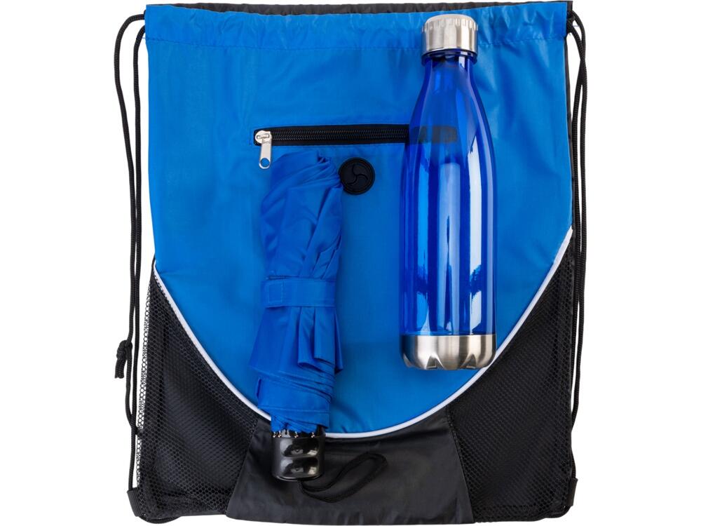 Удобный рюкзак на верёвочных лямках с одним основным отделением, которое стягивается шнурком. Спереди расположен большой карман, закрывающийся на молнию.