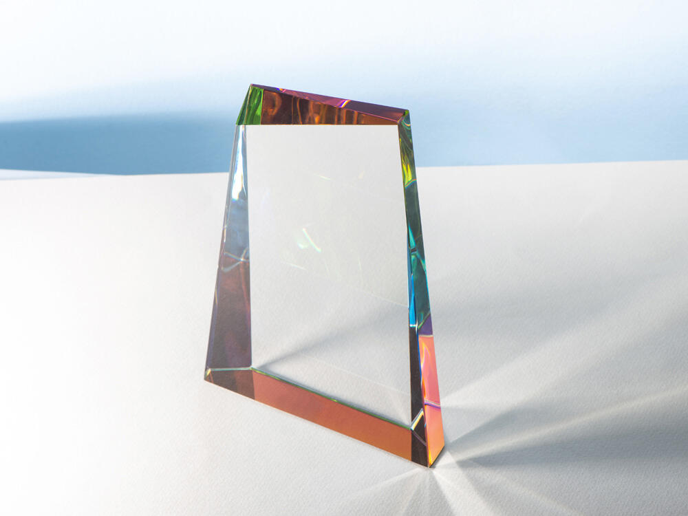 Награда выполнена из прозрачного стекла, переливающегося на свету всеми цветами радуги, и не имеет постамента. Под разными углами награда сияет разными цветами, а иногда и всем радужным спектром сразу. Благодаря необычной форме, напоминающей философский камень, и сиянию в лучах света она смотрится очень оригинально.