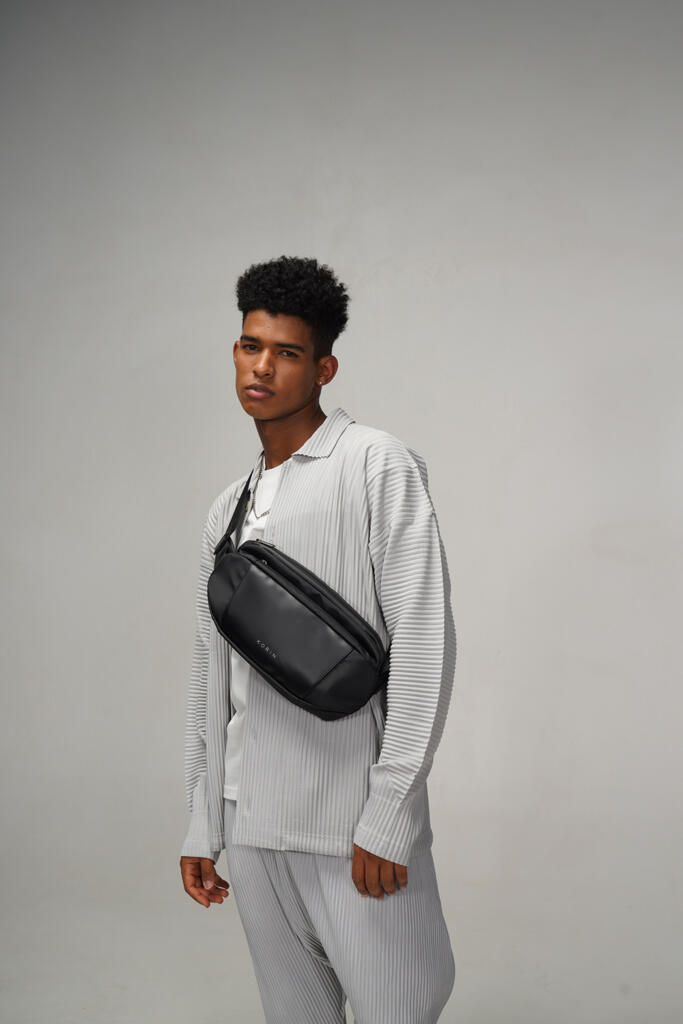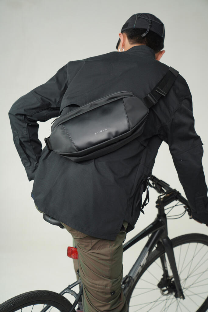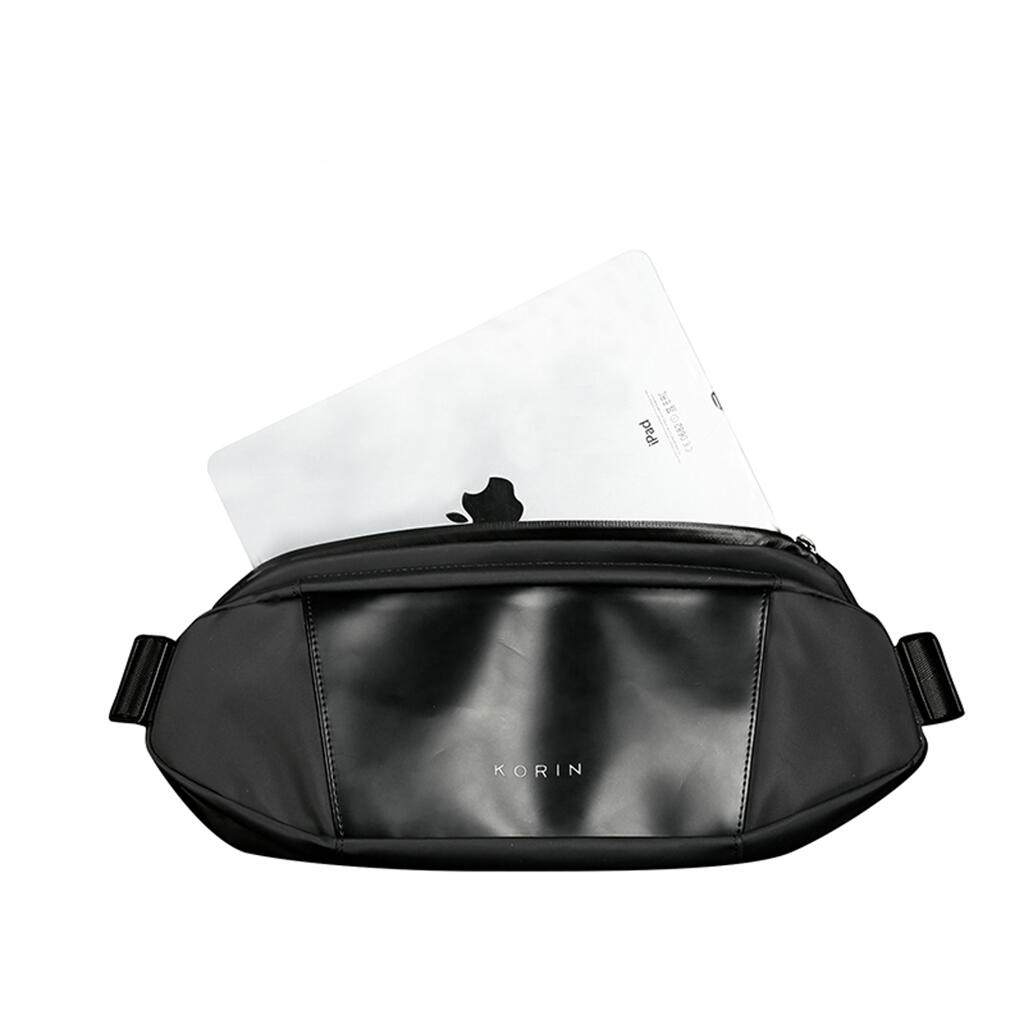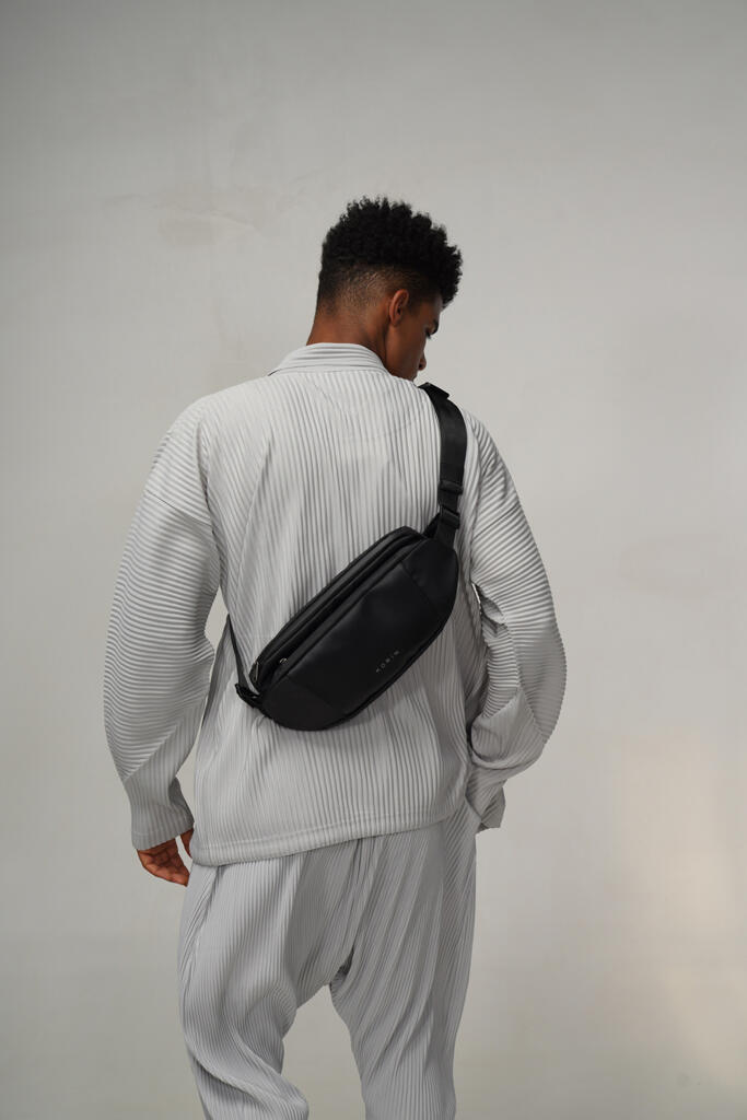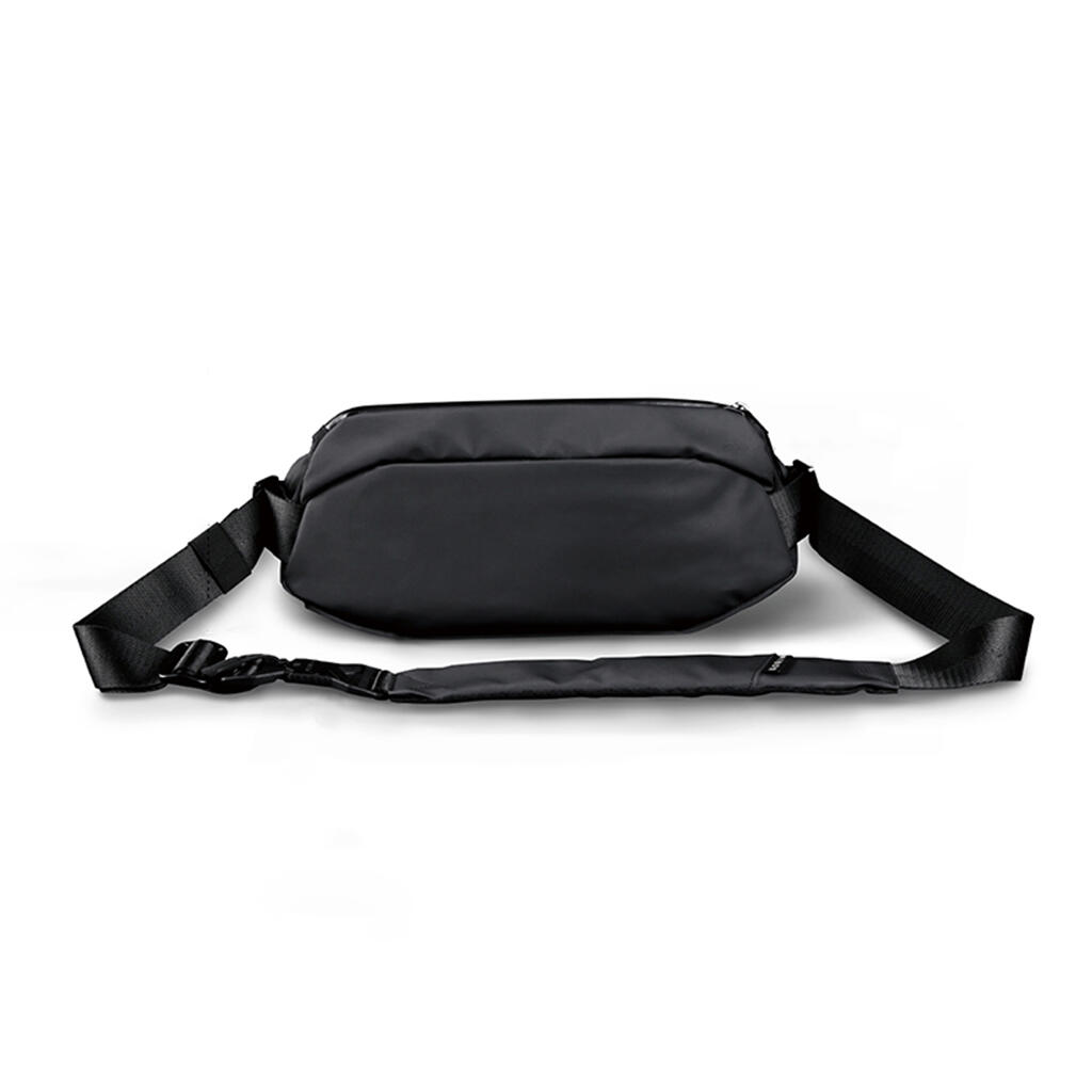 Модная эргономичная наплечная сумка FlipSling черного цвета. Сделана из прочного водоотталкивающего полиэстера в комбинации с искусственной кожей. Основное отделение разделено перегородкой на две части и закрывается на водонепроницаемую молнию YKK. Регулируемый ремень сумки с усовершенствованной сильной магнитной застежкой специальной конструкции, которая позволяет вам легко снять сумку с себя, в то же время надежно защищает ее от срывания. Часть ремня со специальным мягким уплотнителем, чтобы сумка не давила на плечо.