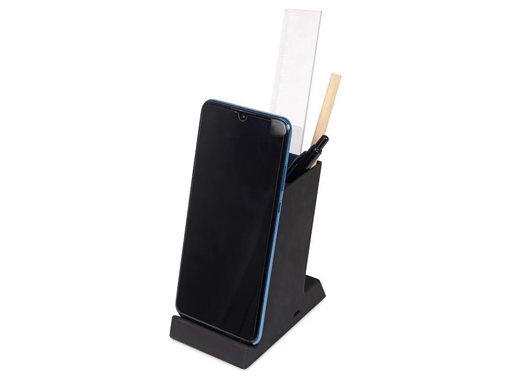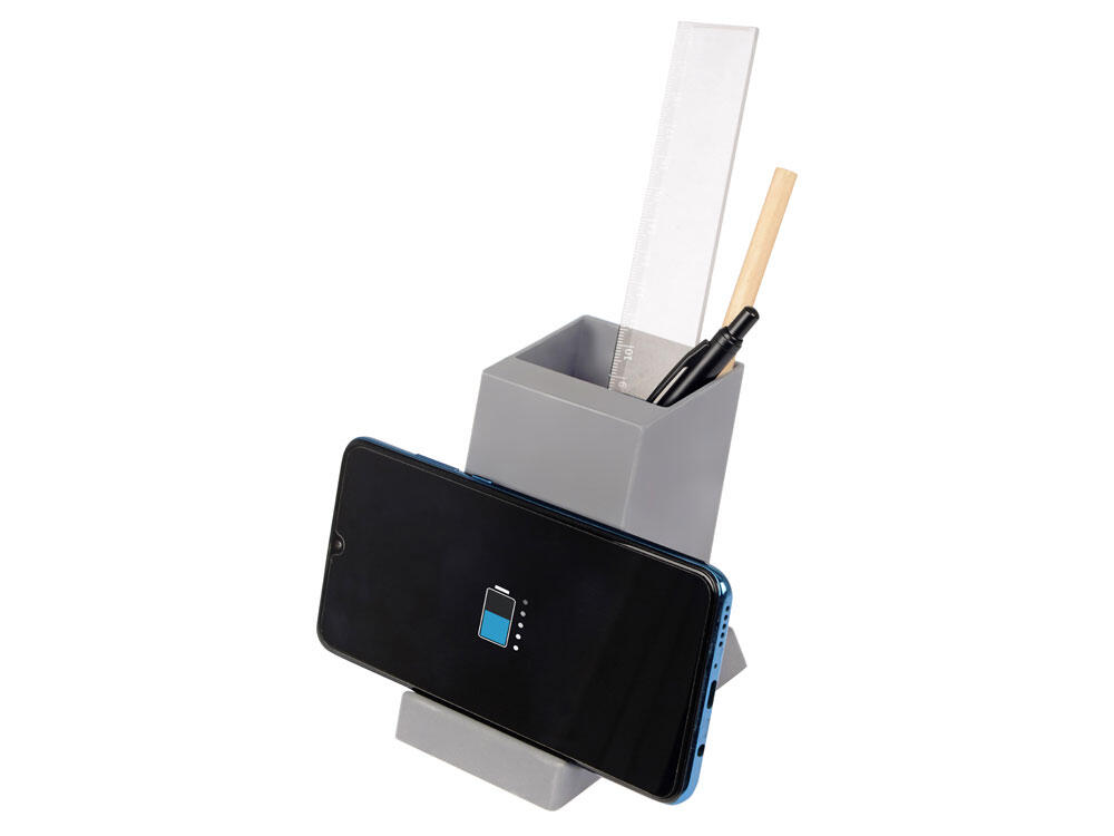 Настольное зарядное устройство Glow Box - современная технологичная альтернатива классическим подставкам для канцелярии. Имеет отсек для канцелярских принадлежностей, внешний разъем USB и встроенную беспроводную зарядку. Телефон для подзарядки можно расположить как горизонтально, так и вертикально - удобно смотреть видео и фото, не снимая устройство с зарядки. Выполнено из пластика с покрытием soft-touch. Будет стильно смотреться на любом рабочем столе.