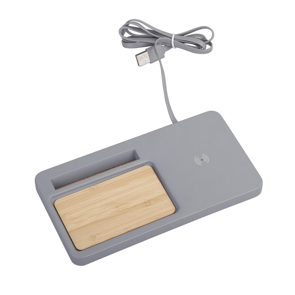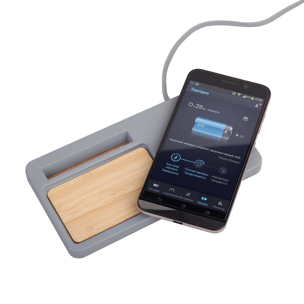 Органайзер выполнен из природных материалов – камня, бамбука и пробки. Компактный, практичный, стильный, экологичный, с актуальной функцией беспроводного заряда гаджет станет полезным аксессуаром как для рабочего стола, так и для домашнего интерьера.