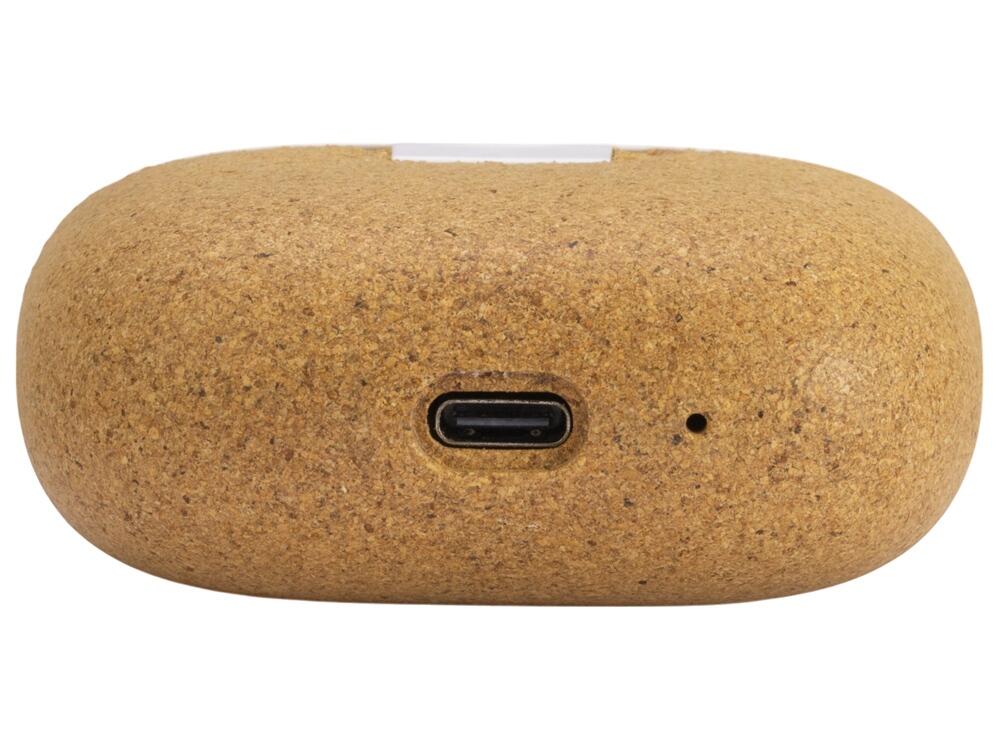 Стильные беспроводные наушники Socorro сочетают экологичность с передовыми технологиями. Изготовлены из переработанного ABS-пластика и натуральной пробки. Чипсет с поддержкой Bluetooth 5.0 обеспечивает качественную передачу музыки и стабильное соединение. Наушники предназначены для прослушивания музыки, но с ними можно ответить и на входящий звонок, нажав 1 раз на наушнике.