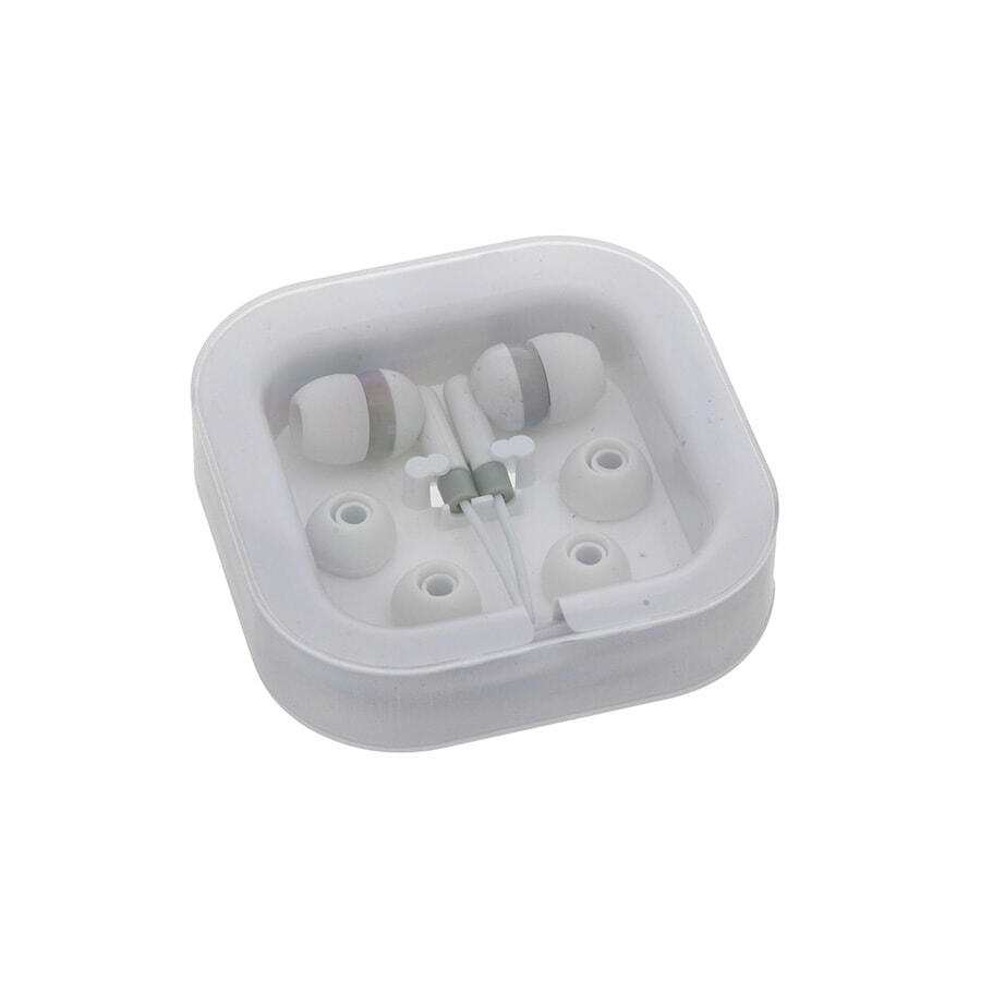 Практичные и комфортные проводные наушники вкладыши в классическом дизайне. Представлены в белом цвете с серой окантовкой, белым проводом и разъемом 3.5 Jack для подключения к источнику.