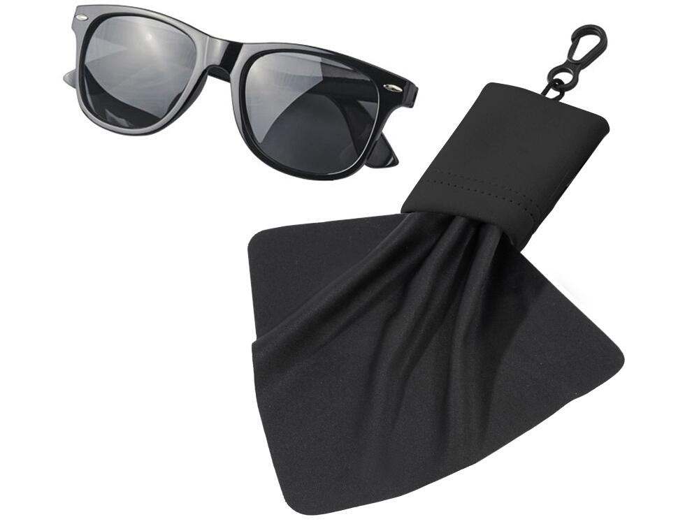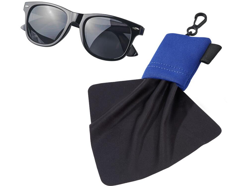 Очищающая салфетка Clear из микрофибры в чехле. Очищающая салфетка из микрофибры для протирания очков, мобильных телефонов, экранов компьютеров и многого другого. Упакована в чехол с карабином для удобной переноски. Ультратонкая микрофибра. 0,010.