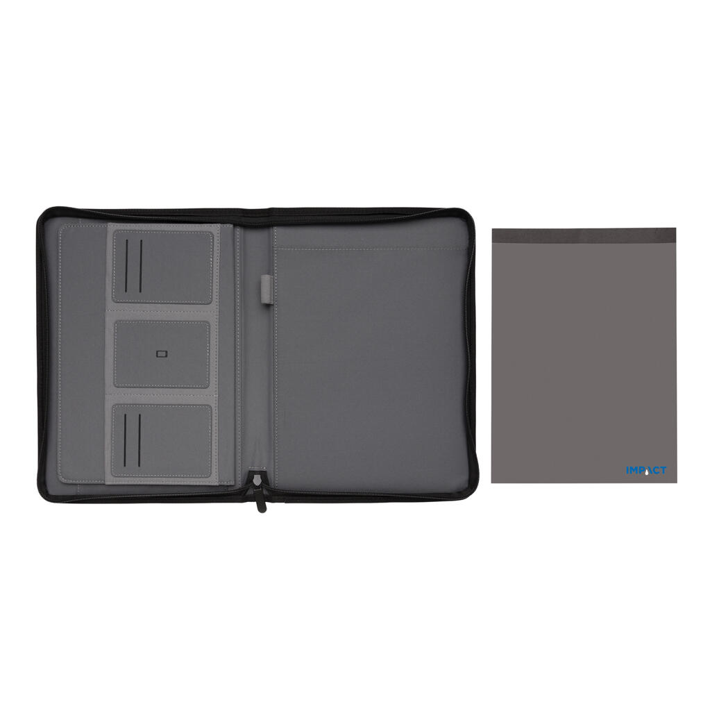 Все необходимое у вас под рукой с этим красивым органайзером формата А4 на молнии, сделанным из RPET AWARE™. Внутри вы найдете 1 большой карман, 1 отделение для телефона, 2 дополнительных кармашка, место для 4 карт и держатель для ручки. Есть блокнот для записей из переработанной бумаги: 20 листов кремового цвета плотностью 80 г/м2. Внешняя ткань и подкладка — полиэстер AWARE™, сделанный из переработанных ПЭТ-бутылок. AWARE™ работает только с настоящими переработанными материалами, которые можно отследить в течение всего цикла производства, что делает эту технологию уникальной. Используя переработанные материалы, мы можем сохранить огромное количество воды, что благотворно скажется на окружающей среде. Внешняя ткань органайзера и подкладка — 100% переработанный полиэстер AWARE™. Не содержит ПВХ.