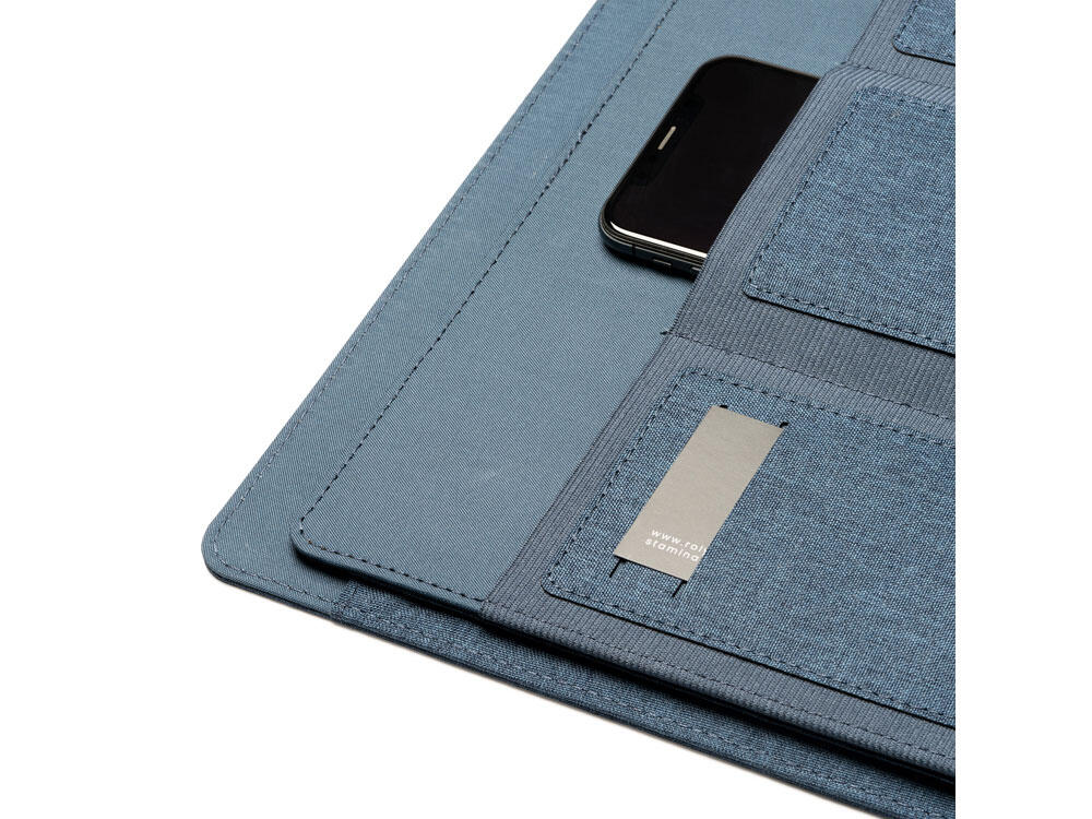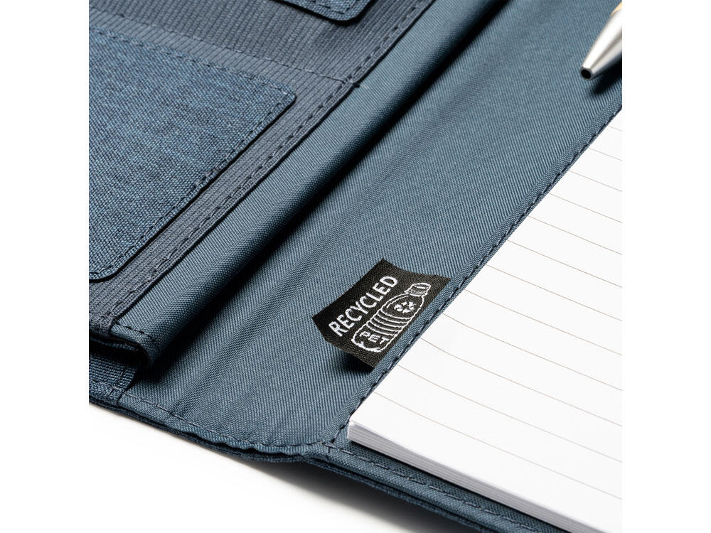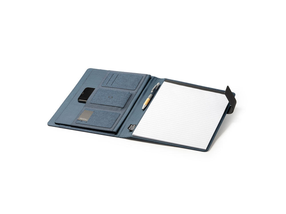 Многофункциональная папка формата А4 из 600D RPET с магнитной застежкой. В комплект входит съемный блокнот на 30 листов. 4 внутренних кармана и держатель для ручек.