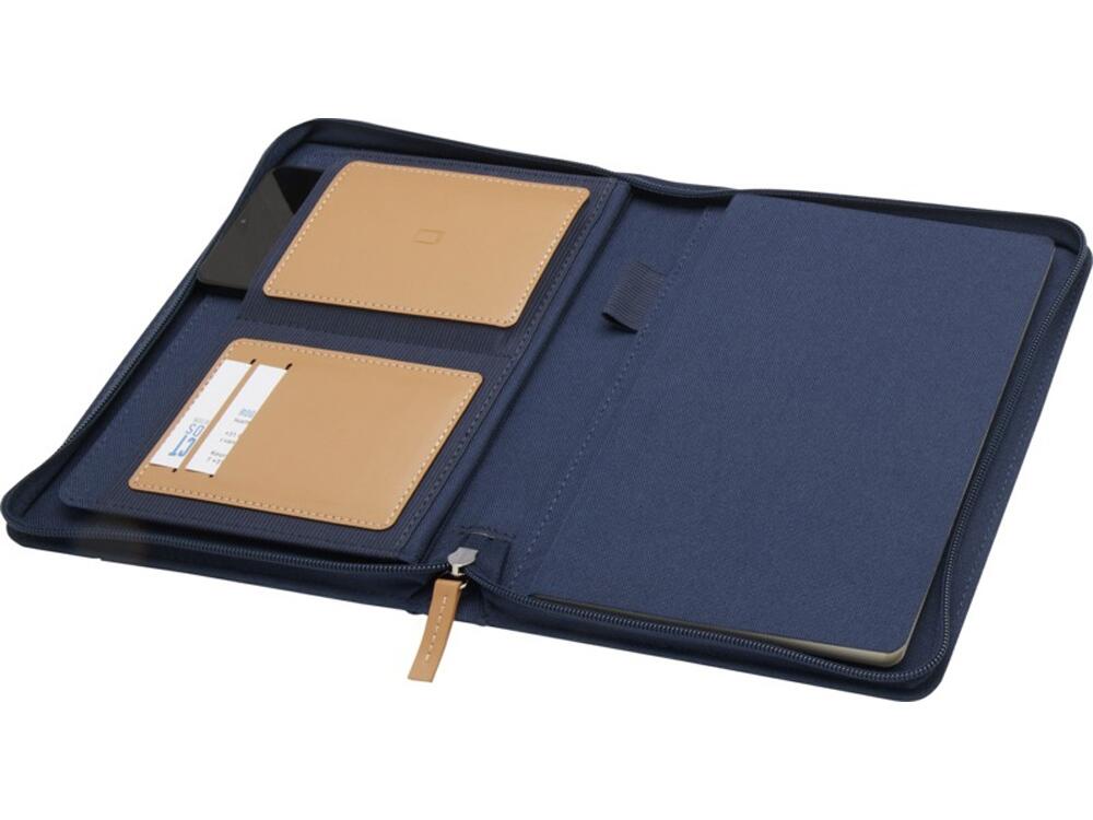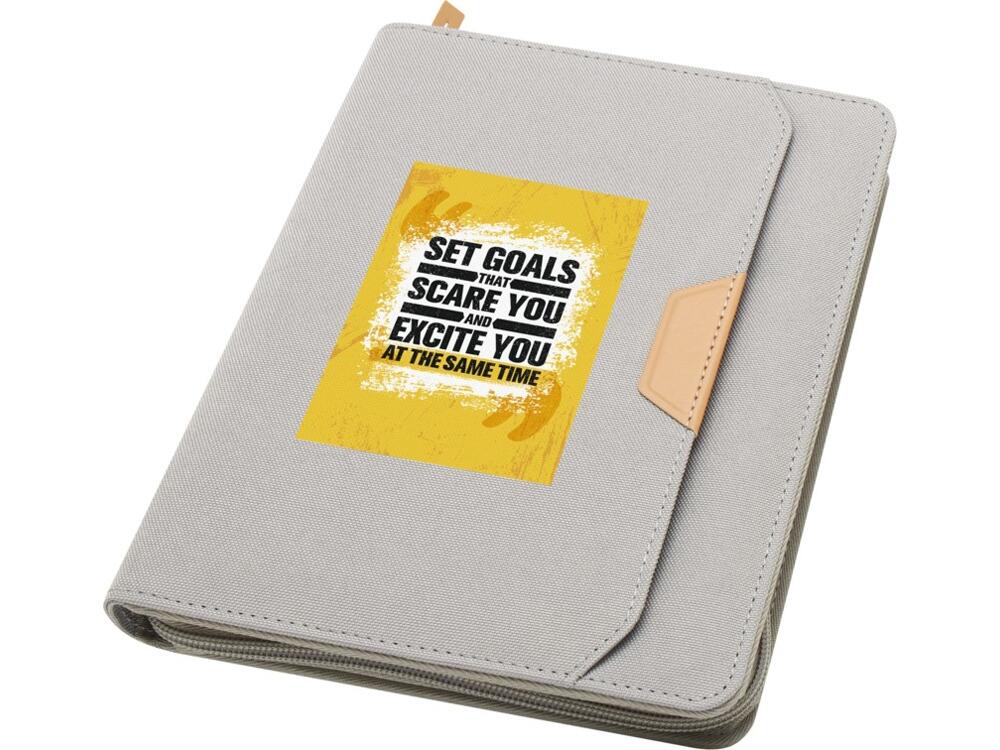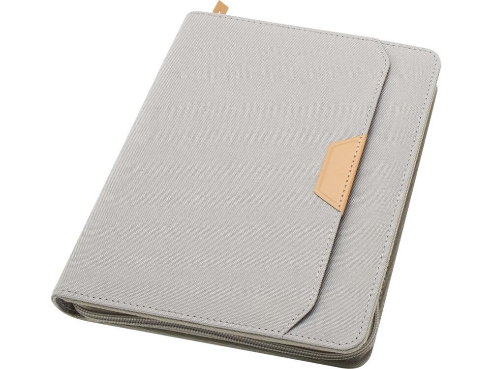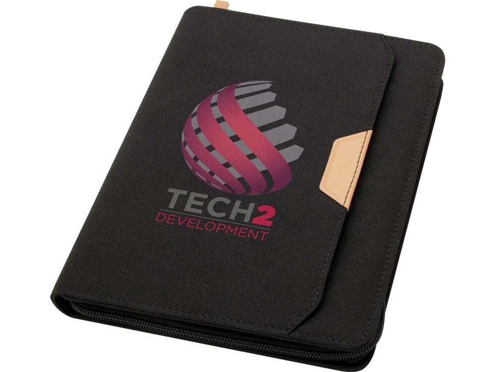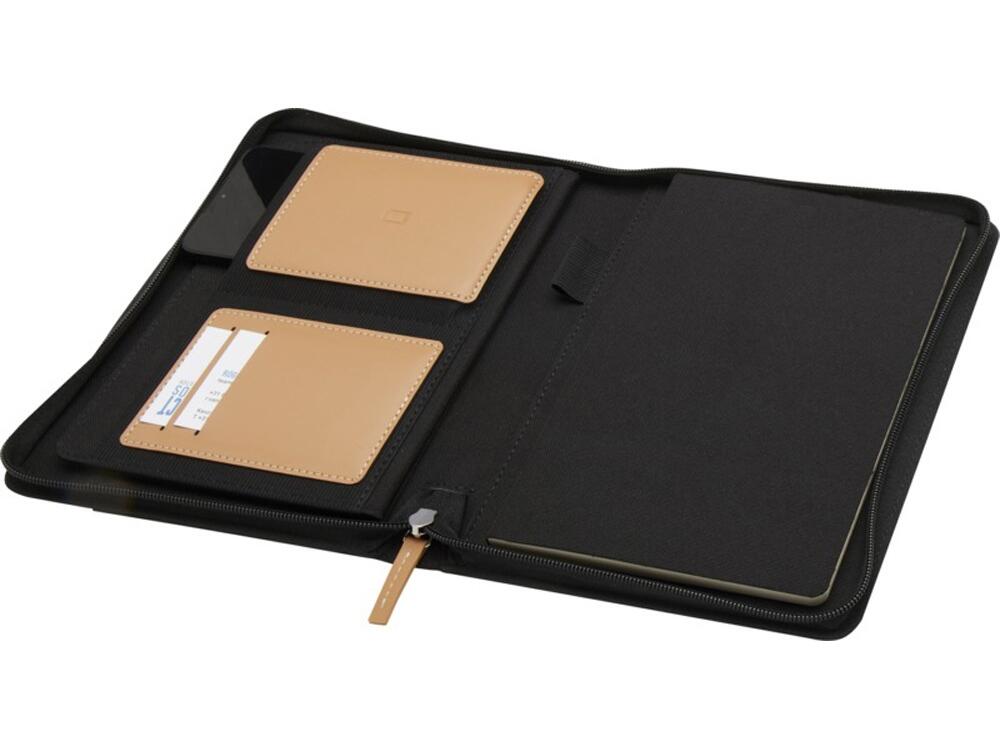 Папка Nomumi формата А5 с закругленными углами — удобный и необходимый предмет в офисе, изготовленный из переработанного пластика. Содержит 64 листа кремового цвета плотностью 80 г/м2, застежку-молнию, петлю для ручки и карман-гармошку. Переработанный PET пластик, бумага.