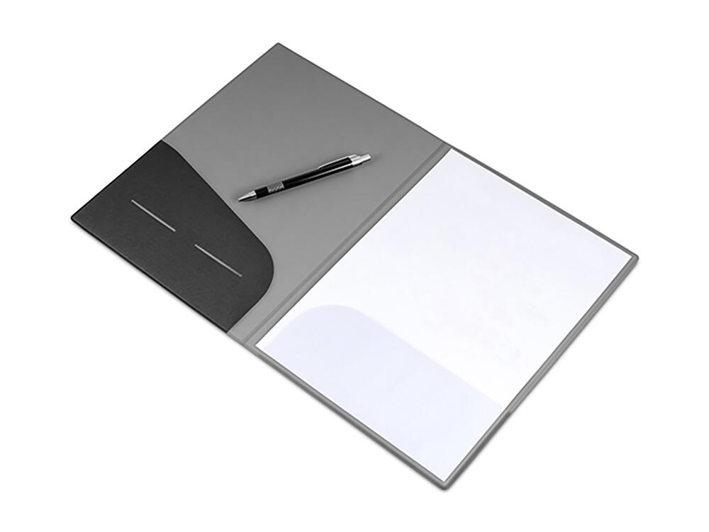 Светло-серый софт-тач внутри не только очень приятен на ощупь, но и выполняет практическую функцию: дополнительный слой усиливает конструкцию папки, повышает ее износостойкость, а бархатистое покрытие позволяет легче и быстрее извлекать бумаги из папки.