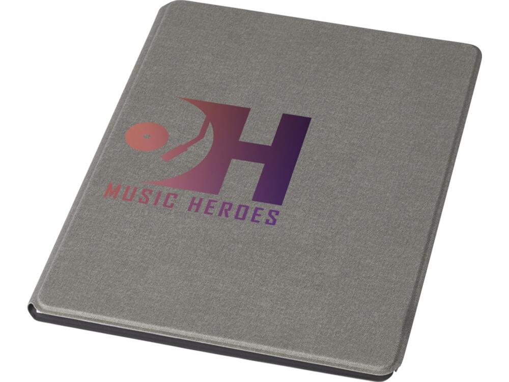 Папка-органайзер Kunveno, сертифицированная RCS, частично изготовлена из полиэстера, бывшего в употреблении, что делает данную папку более экологичным выбором, поскольку она помогает сократить использование первичного сырья. Имеет магнитную застежку и 20 белых листов в линейку из переработанной бумаги плотностью 80 г/м² из экологически чистых источников. FSC certified paper. FSC Mix Credit P7 CU-COC-877277.