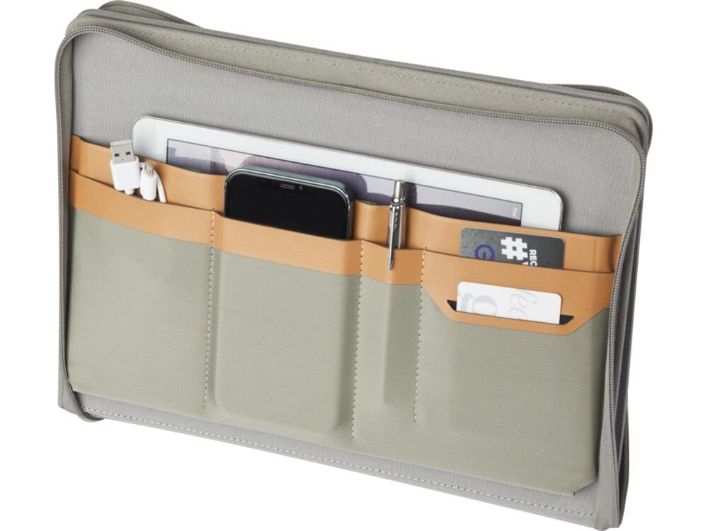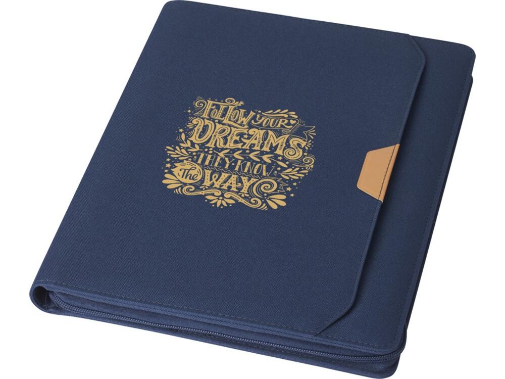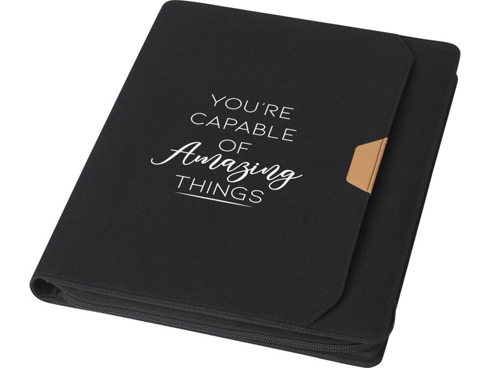 Папка- органайзер Nomumi, сертифицированная RCS, частично изготовлена из переработанного полиэстера, бывшего в употреблении, что делает данную папку более экологичным выбором, поскольку помогает сократить использование первичного сырья. Имеет застежку-молнию, петлю для ручки, карман-гармошку и 20 белых листов в линейку из переработанной бумаги плотностью 70 г/м² из экологически чистых источников. Ручка и другие аксессуары, представленные на фотографиях, в комплект поставки не входят. FSC certified paper. FSC Mix Credit P7 CU-COC-877277.