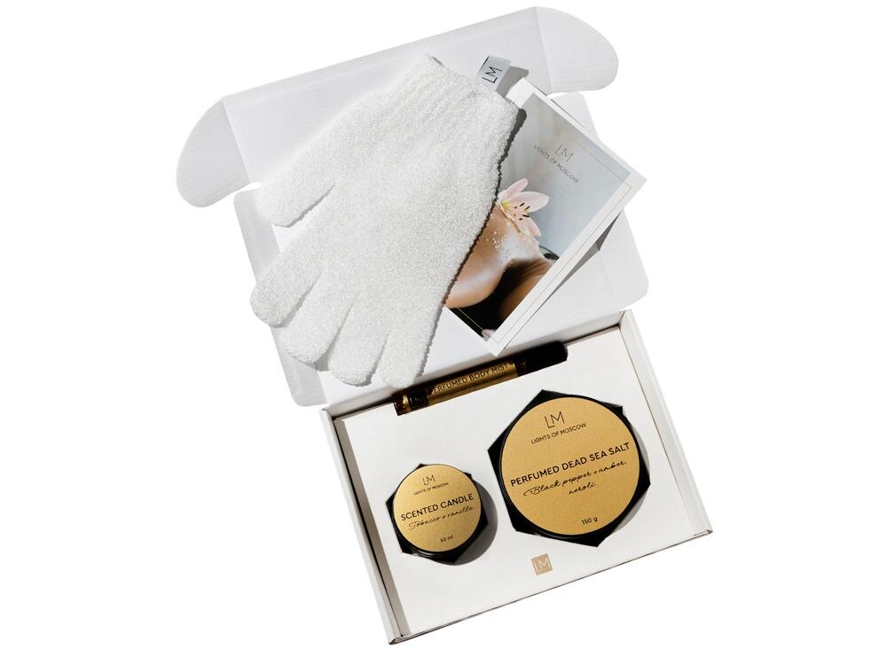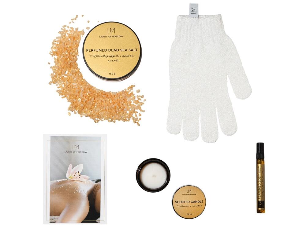 Relaxing Spa Set от Lights of Moscow подарит хорошее настроение и заряд бодрости, а также послужит полезным подарком для ваших родных, близких, друзей и коллег. SPA -набор снимет стресс, поможет восстановить внутреннюю гармонию и позволит окунуться в мир ароматов селективной парфюмерии. Каждый продукт в наборе создан по мотивам современных веяний в перфорированном искусстве. Подборка из трех топовых ароматических композиций даст возможность примерить каждый парфюм на себе, почувствовать звучание и проникнуться его настроением.