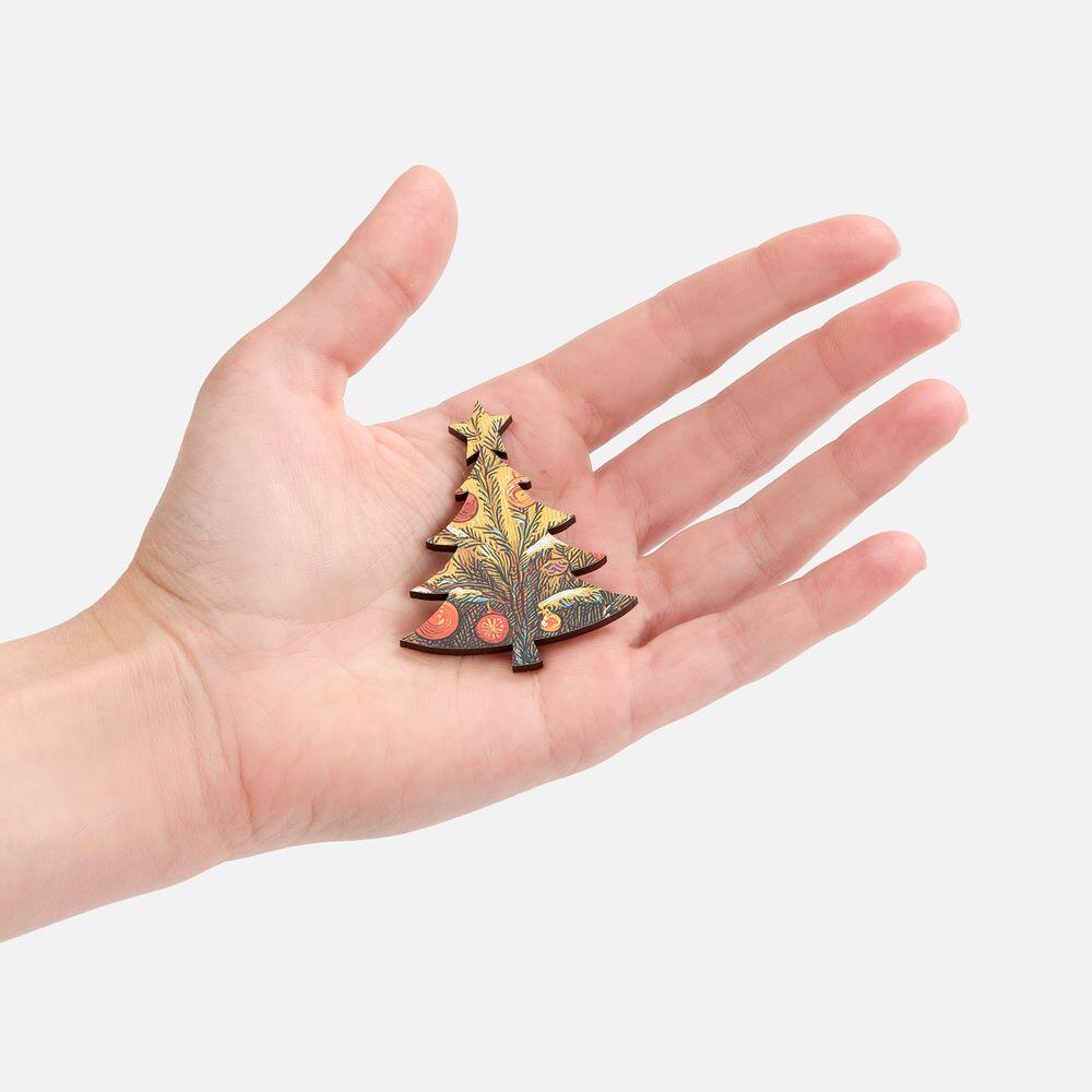 Упаковка в форме елочки сама по себе является украшением, а фигурные детали пазла — конфеты, снежинки и елочки — складываются в гармоничную атмосферную композицию. Магнитная крышка на упаковке обеспечивает надежное хранение всех элементов.
